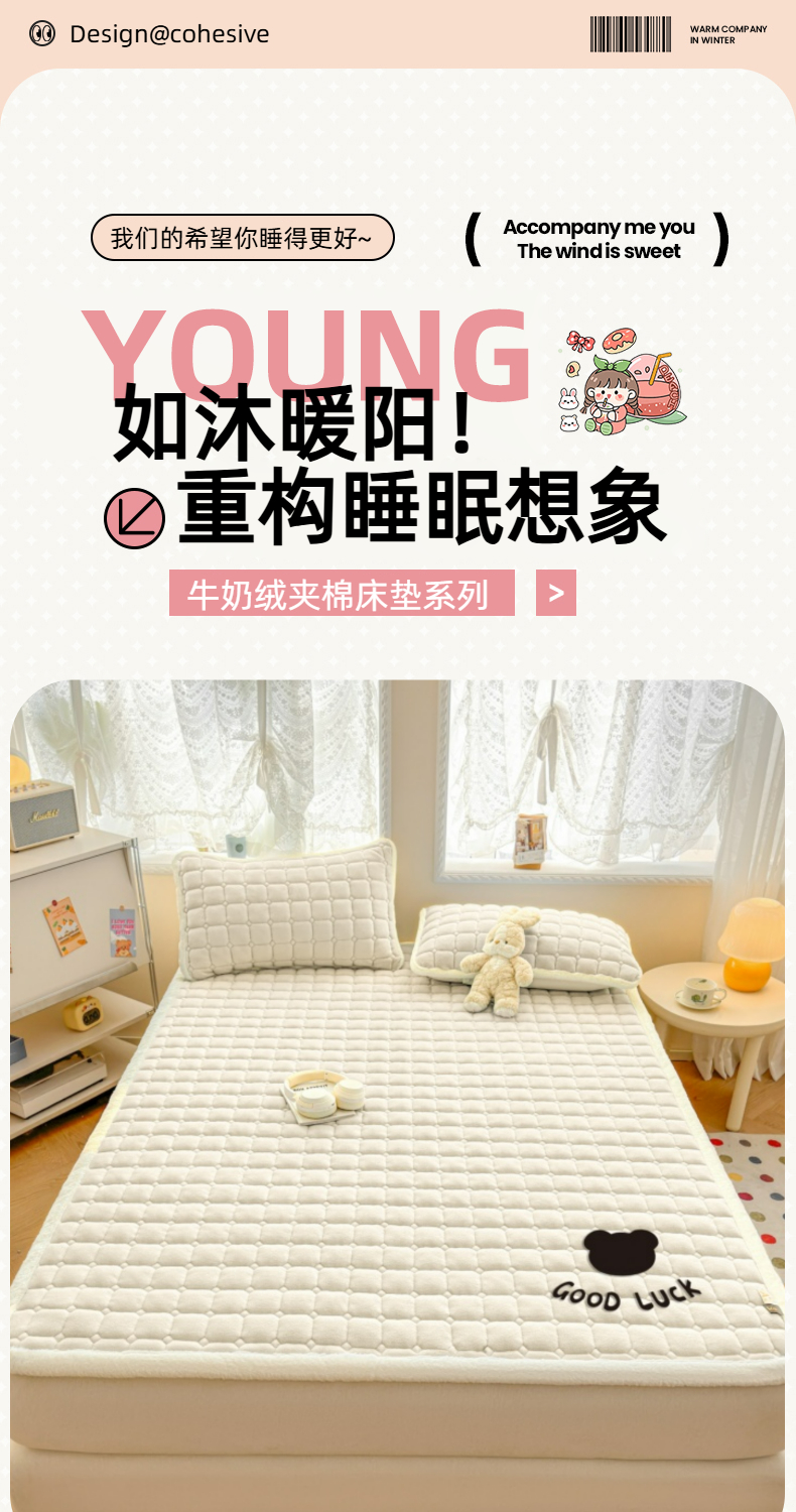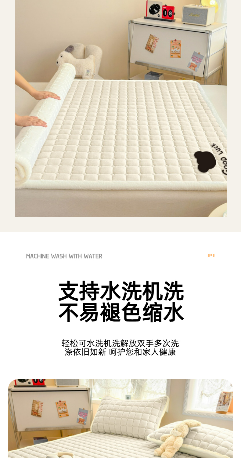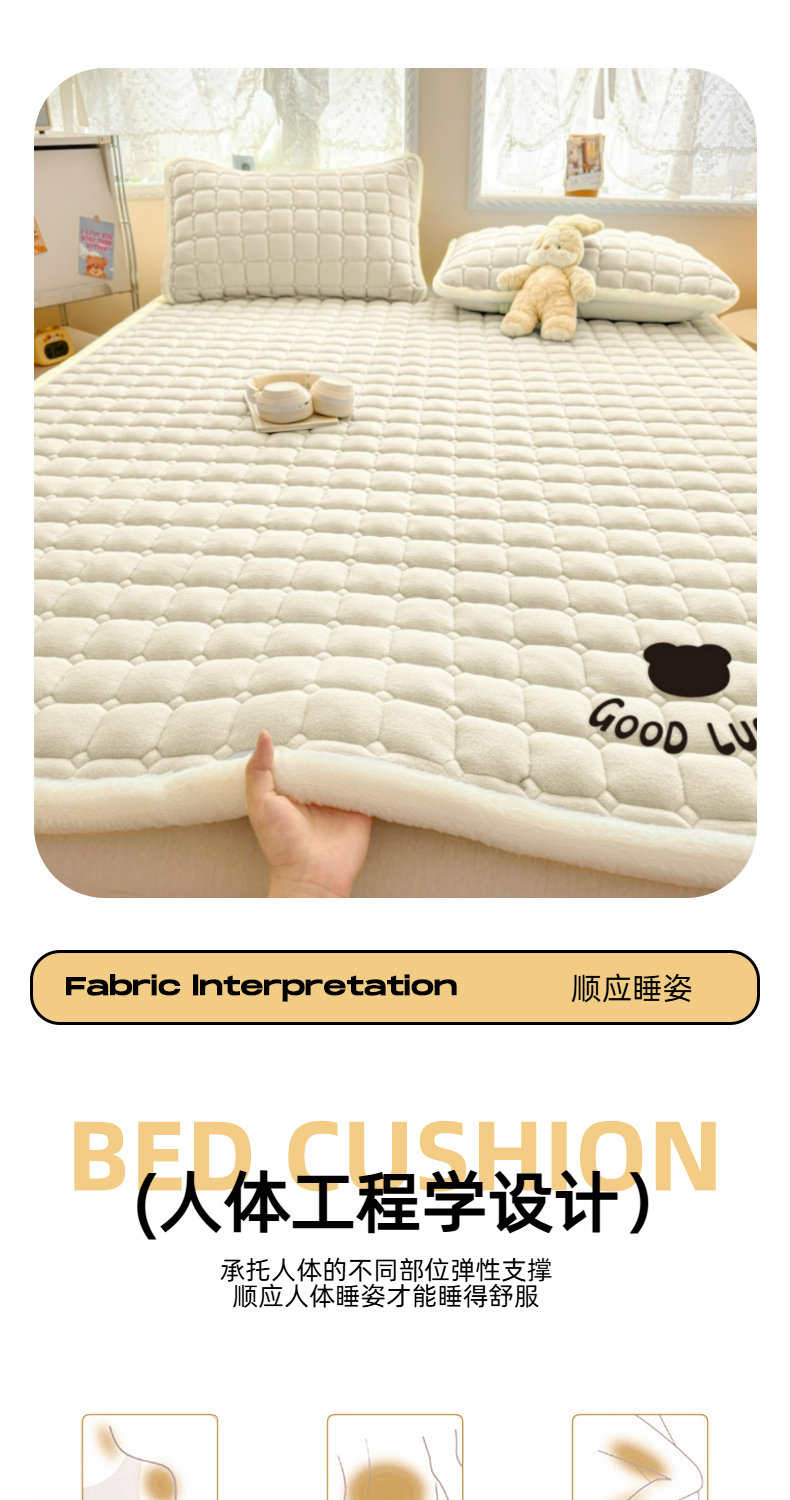 当前位置: 91家纺网 > 商品网购 > 床垫/床褥 > 普通床垫 > 爱屋及屋 2025新款牛奶绒纯色床护垫-好运熊大床系列 米白