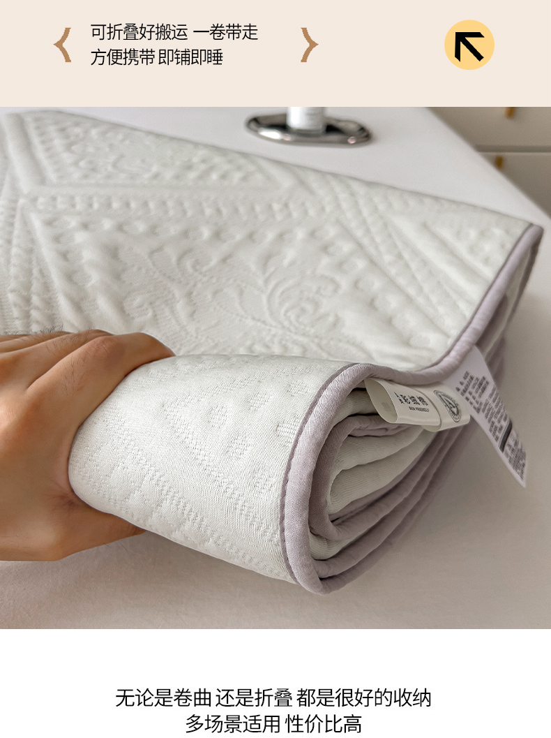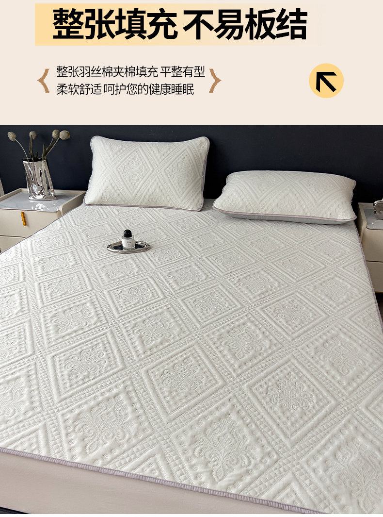 • 91家纺网 家纺一手货源 找家纺 雅诗帛 2025新款A类柔感彩绒棉夹棉床护垫-菱影蔓花 菱影蔓花-珠光白