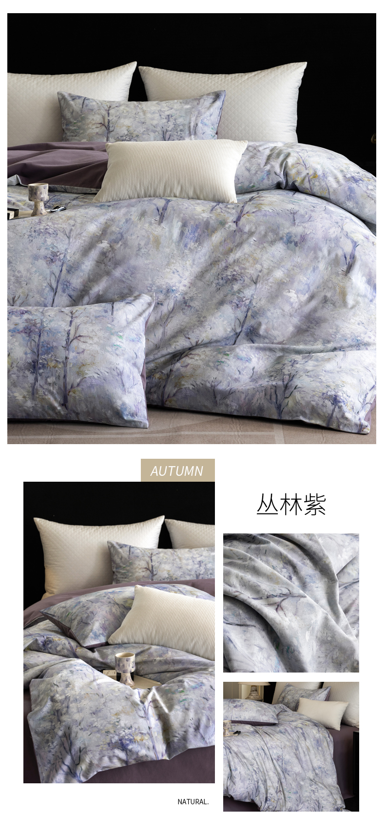 商品名称:立奥被业 2025新款全棉高密磨毛数码印花四件套(控价199)丛林紫