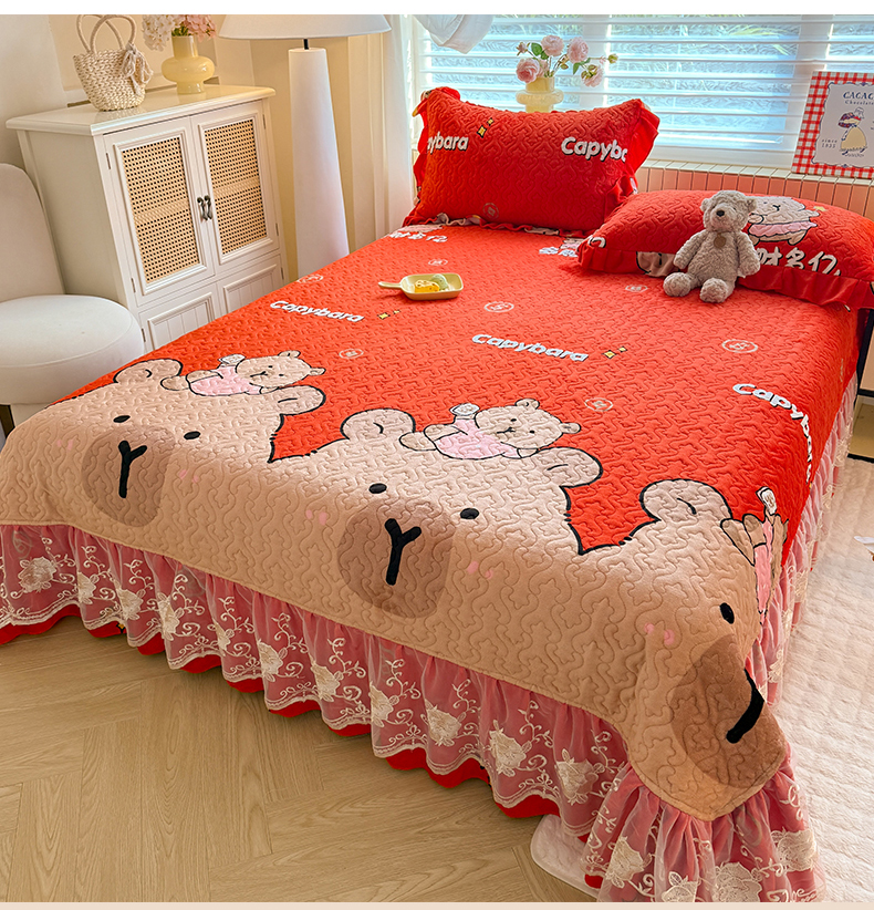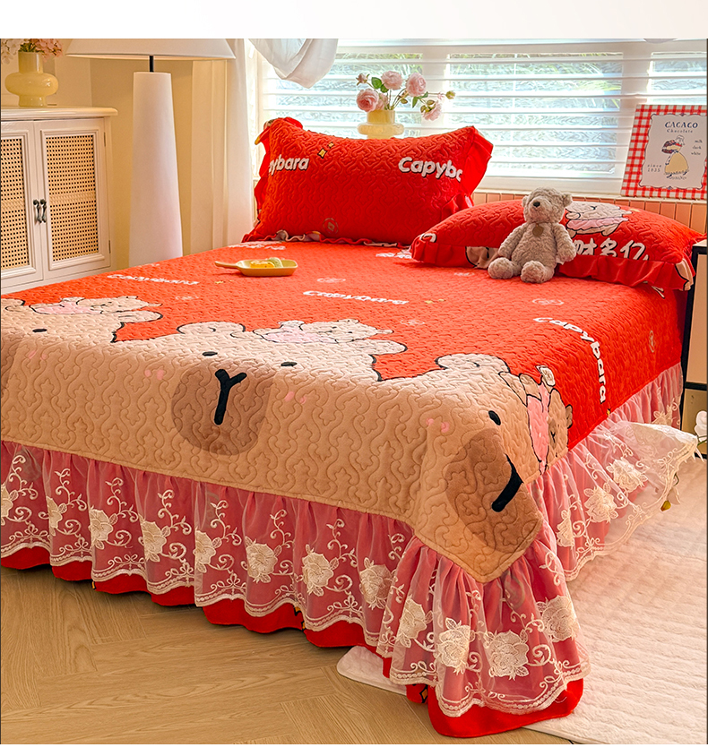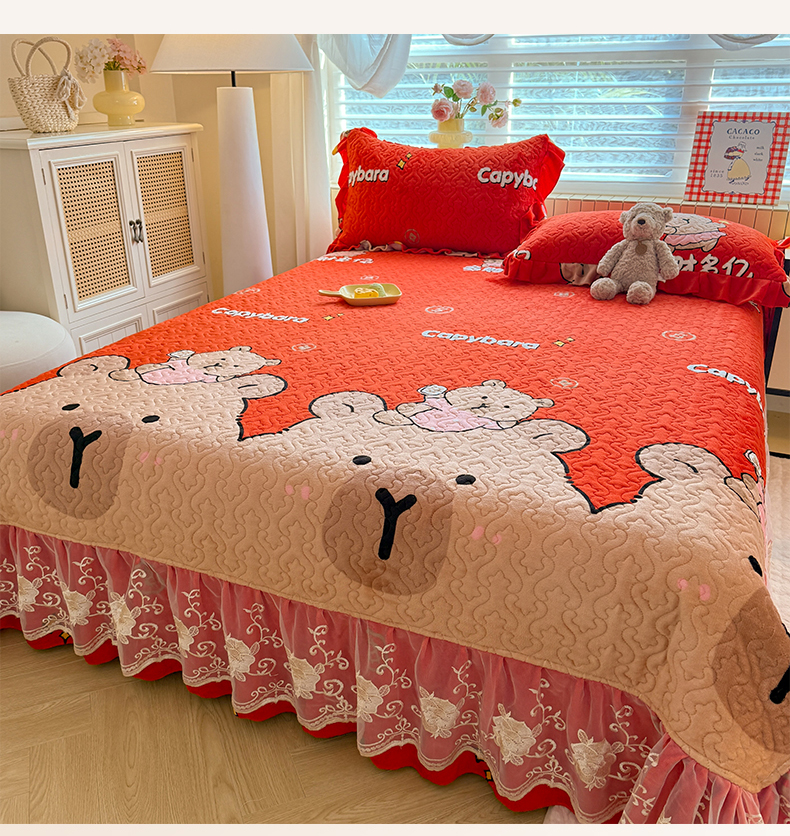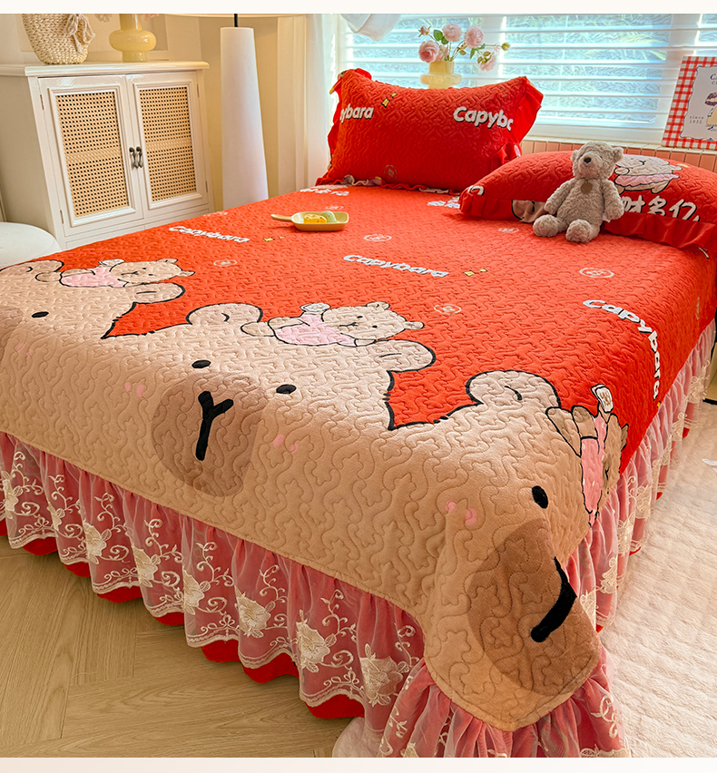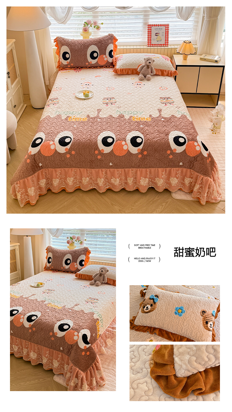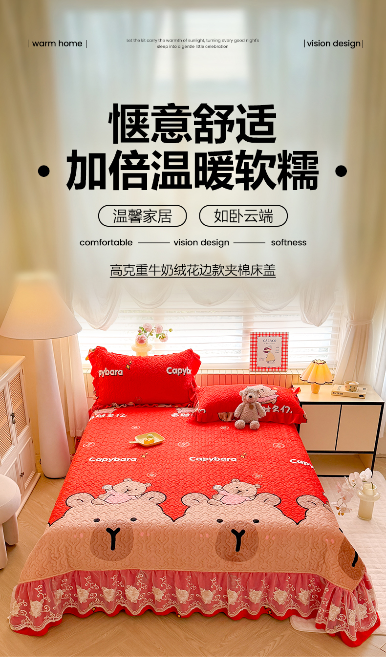 (总)美达家纺 2025新款高克重牛奶绒花边款夹棉床盖三件套