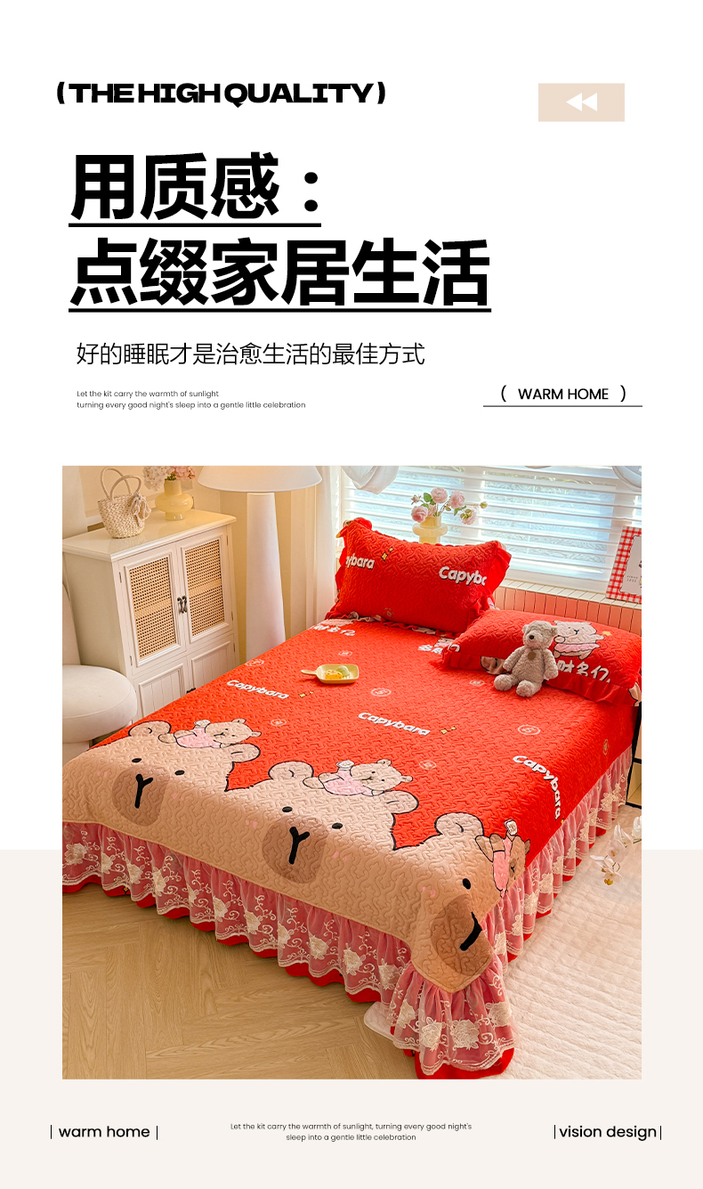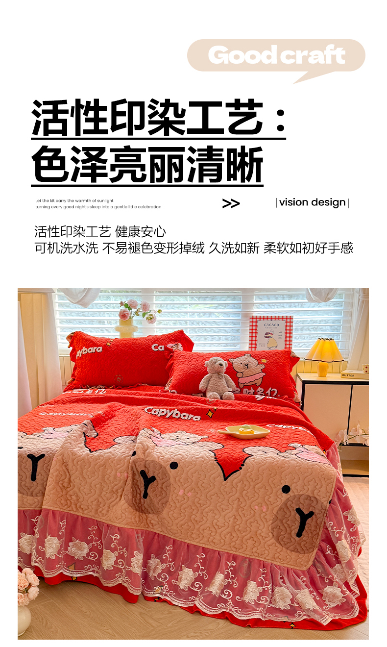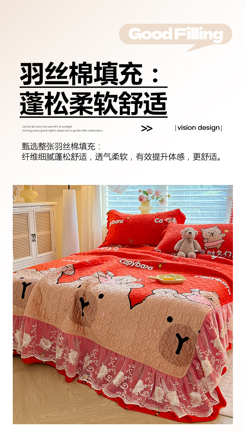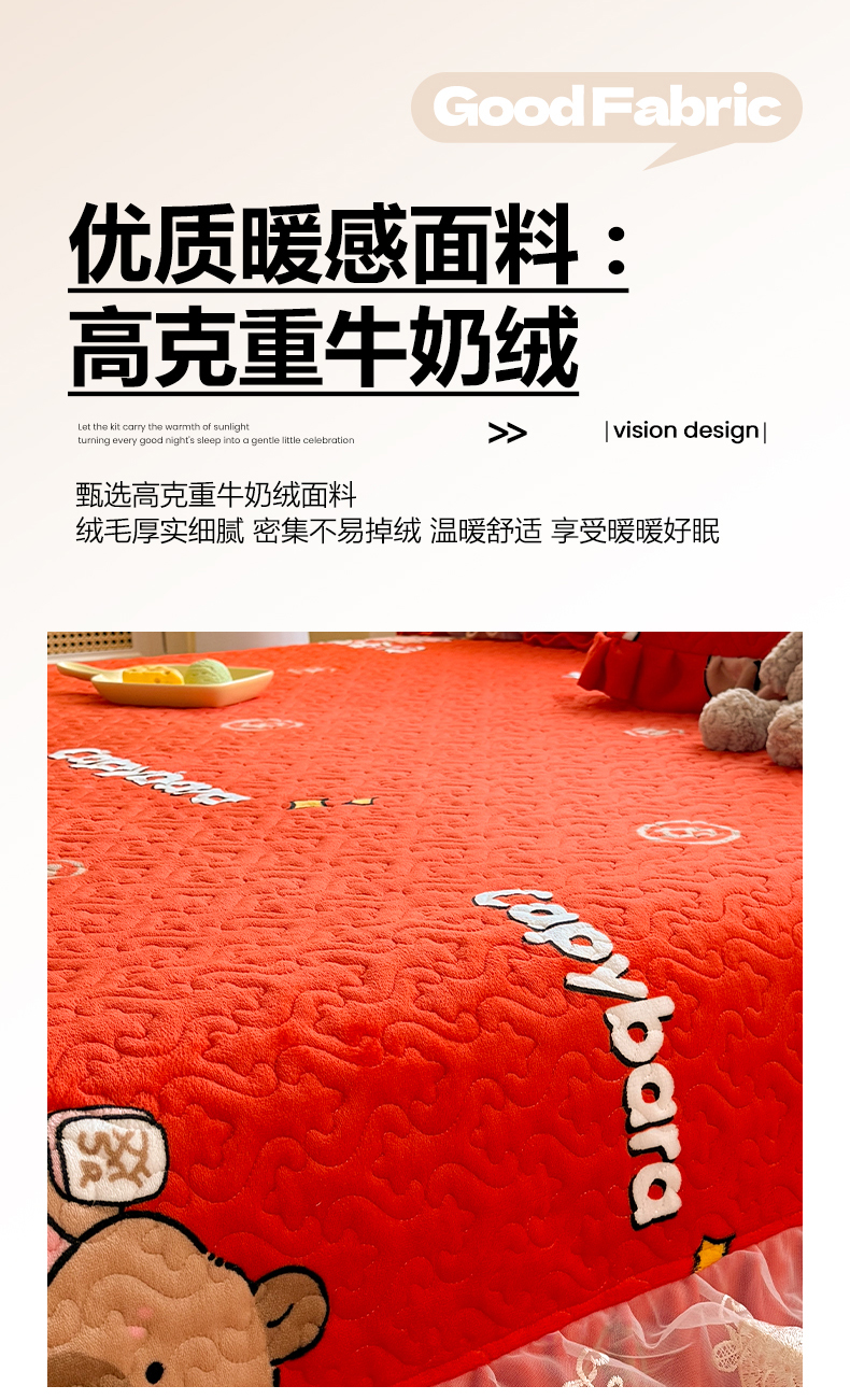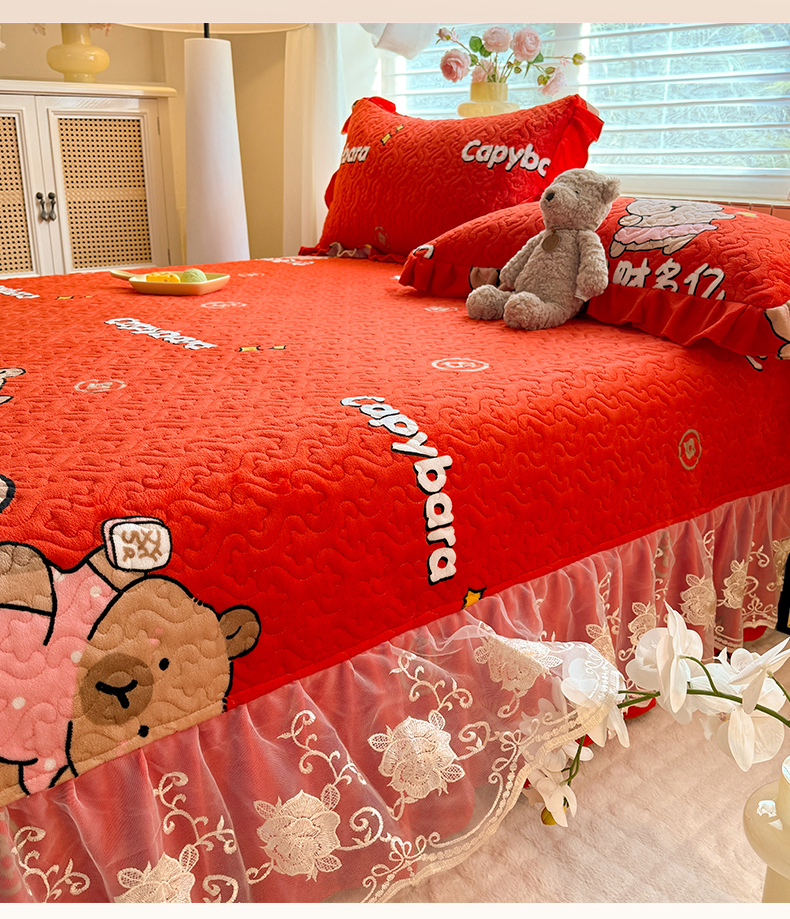 (总)美达家纺 2025新款高克重牛奶绒花边款夹棉床盖三件套