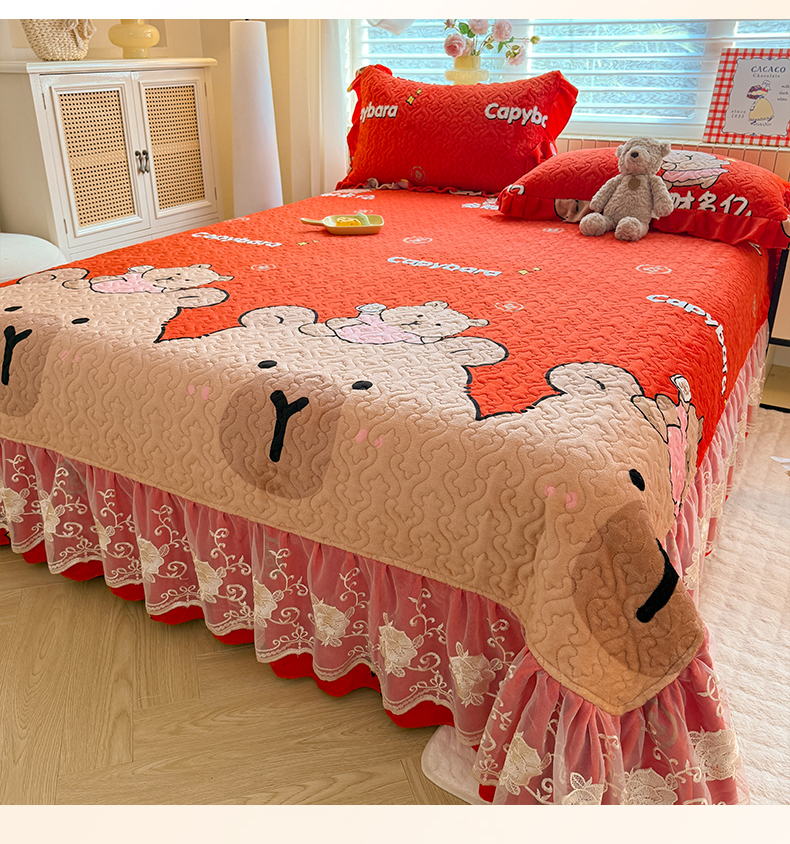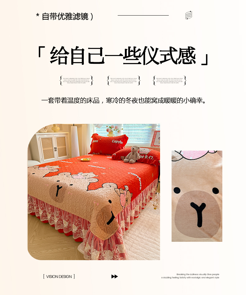 (总)美达家纺 2025新款高克重牛奶绒花边款夹棉床盖三件套,巴拉巴拉,格子萌熊,恐龙星球,梦蝶,时来运转,甜蜜奶吧,微笑熊,针织熊