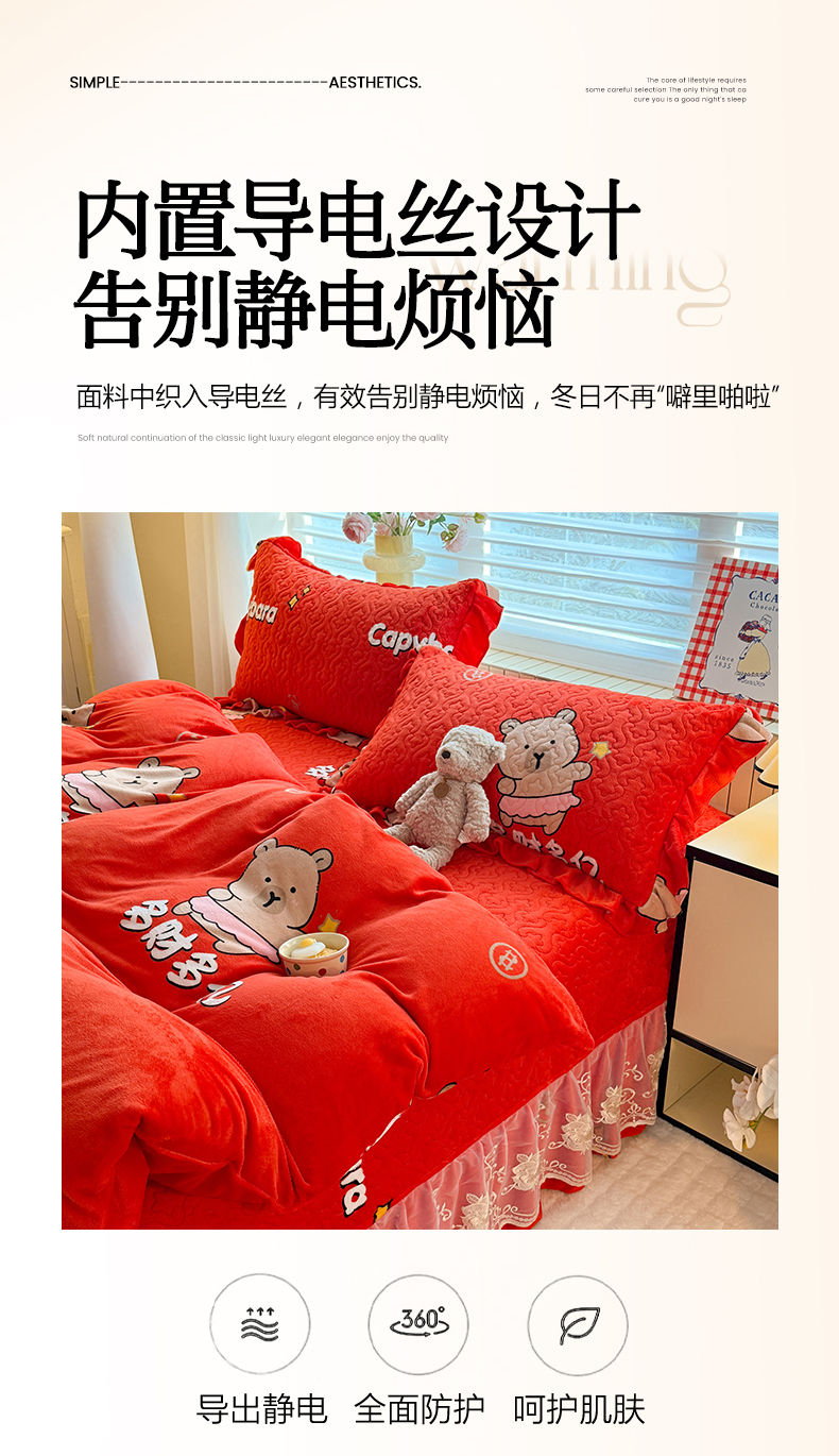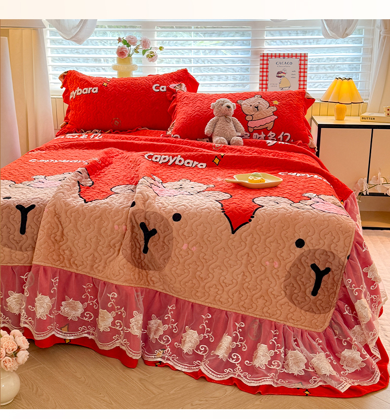 美达家纺 2025新款卡通牛奶绒印花床盖四件套 巴拉巴拉