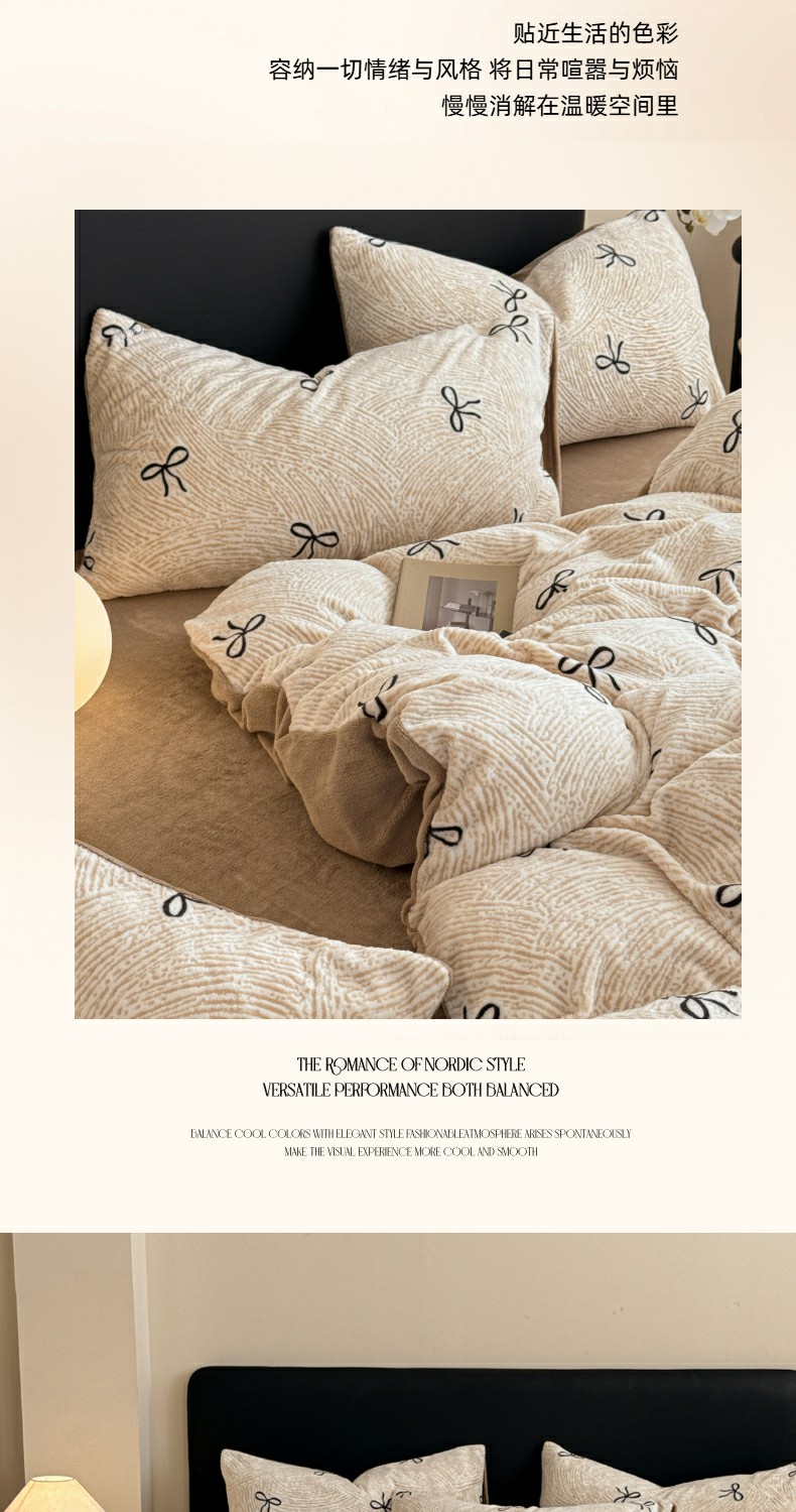 呗旺鹿 2025新款A类高克重着色烂花雕花牛奶绒四件套 梦幻芭蕾奶白