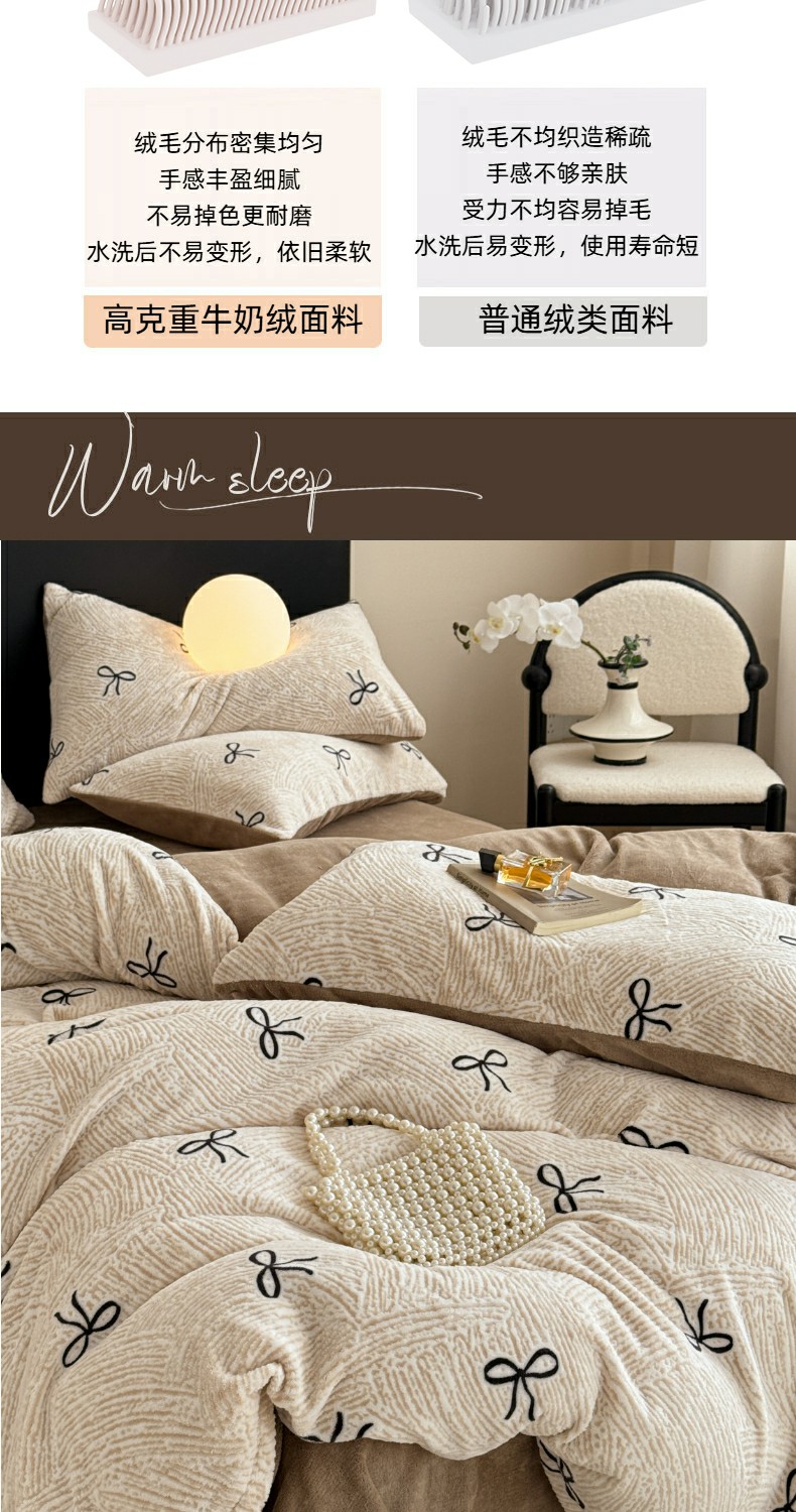 商品名称:呗旺鹿 2025新款A类高克重着色烂花雕花牛奶绒四件套 梦幻芭蕾奶白