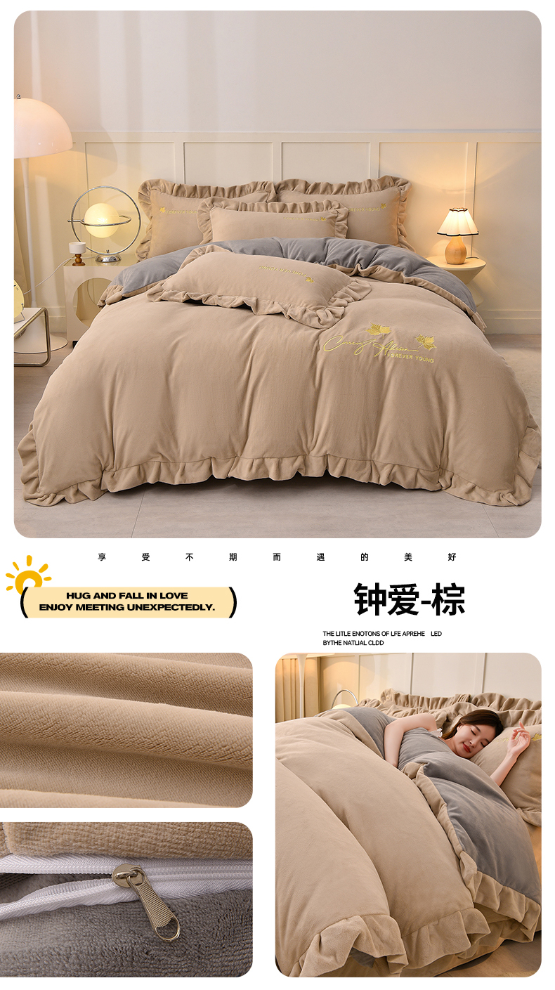 当前位置: 91家纺网 > 商品网购 > 床品套件 > 四件套 > 牛奶绒四件套 > 氧家 2025新款高克重牛奶绒拼角刺绣床单床笠床盖款四件套-钟爱 钟爱-紫