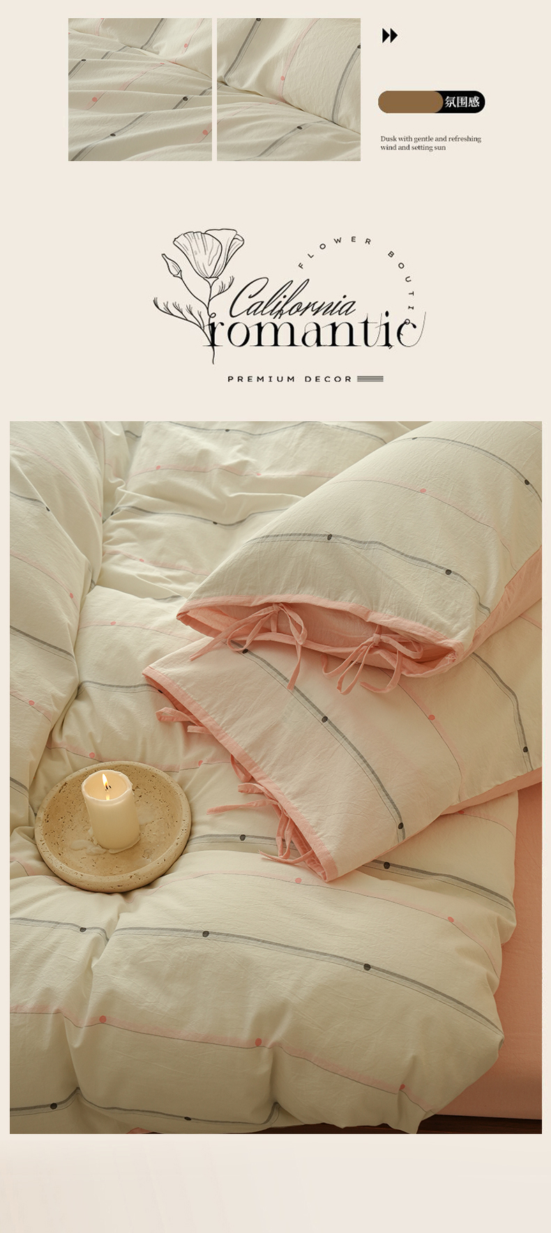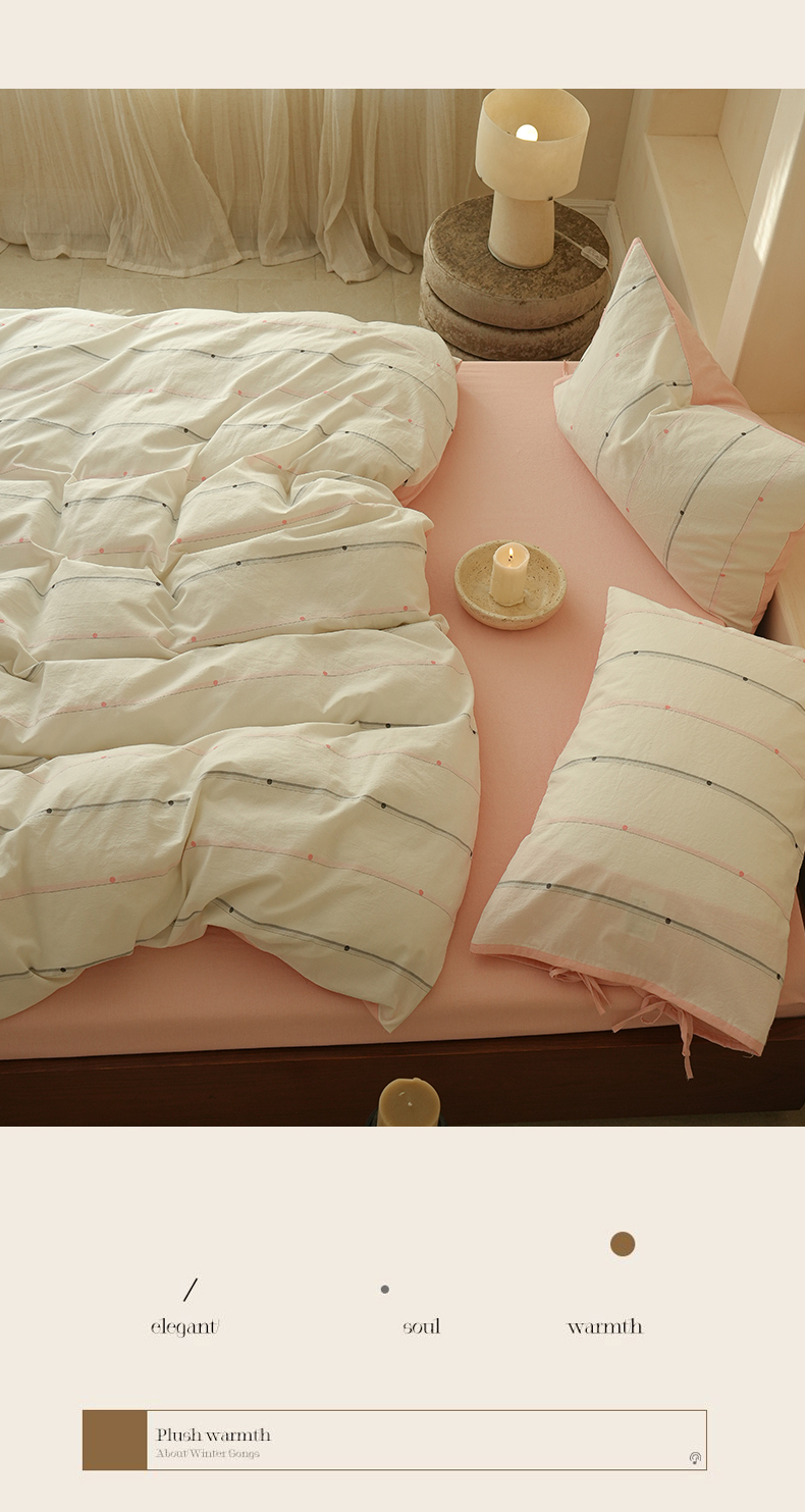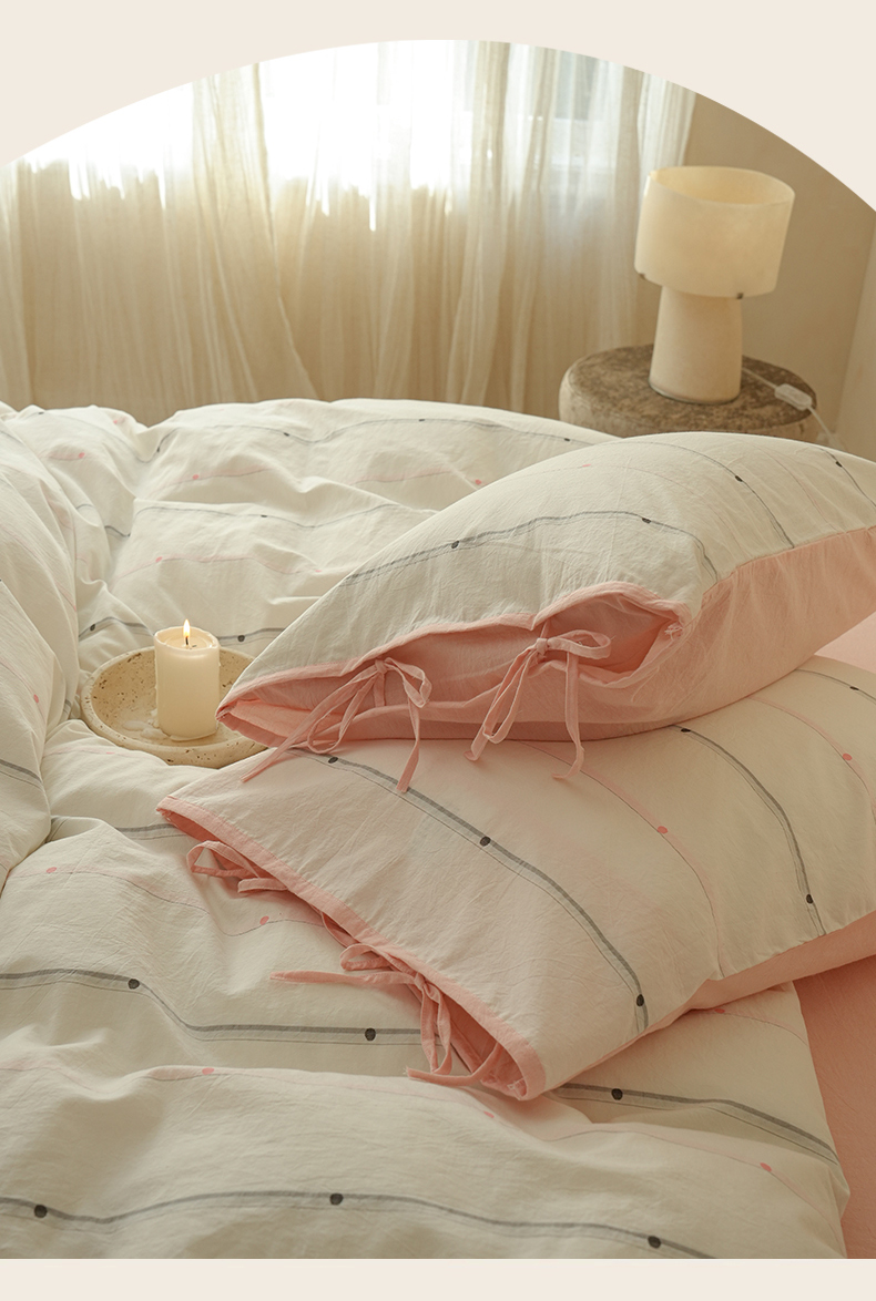 寐居家纺 2025新款全棉A类60支水洗色织提花剪花四件套 糖豆豆-灰粉