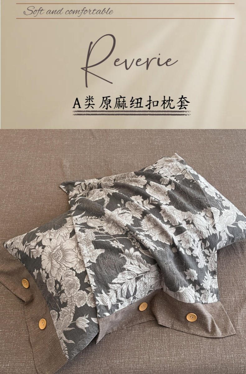 商品名称:梦舒羽 2025新款原麻纽扣枕套宿舍单只枕芯套枕头套一对装枕芯内胆套 浮绘花影-白