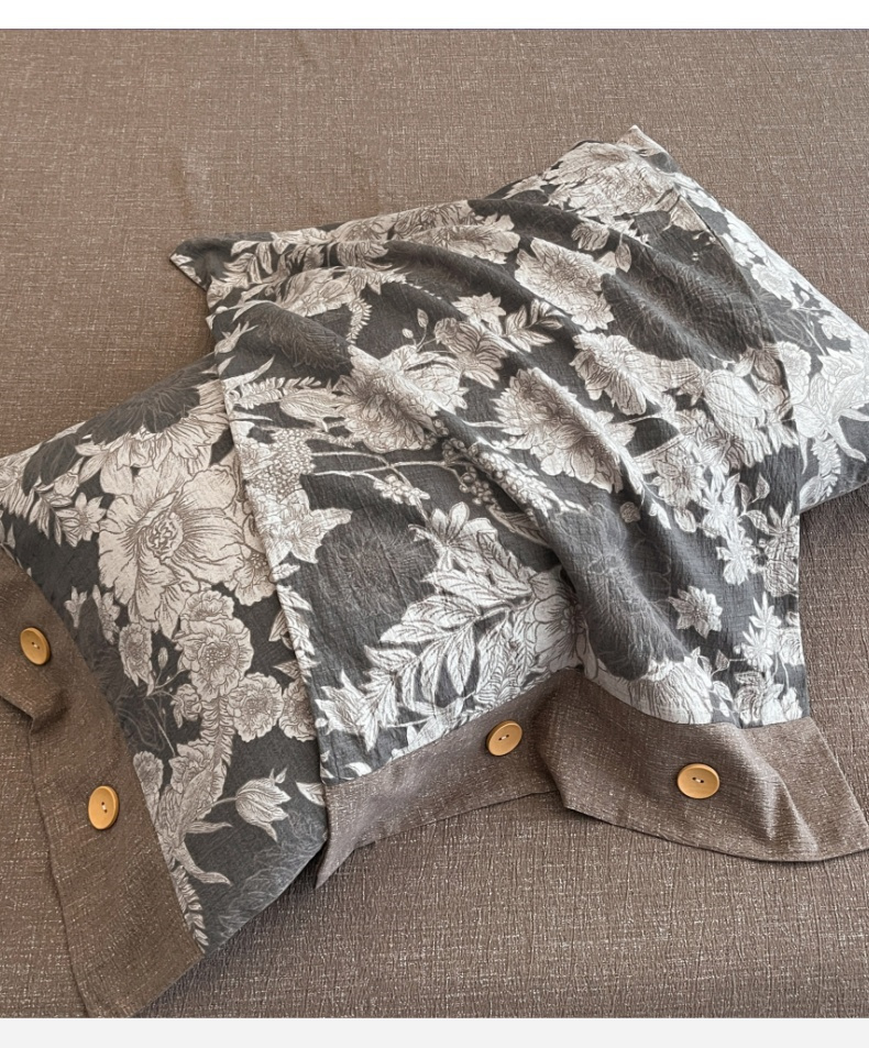 梦舒羽 2025新款原麻纽扣枕套宿舍单只枕芯套枕头套一对装枕芯内胆套 浮绘花影-白