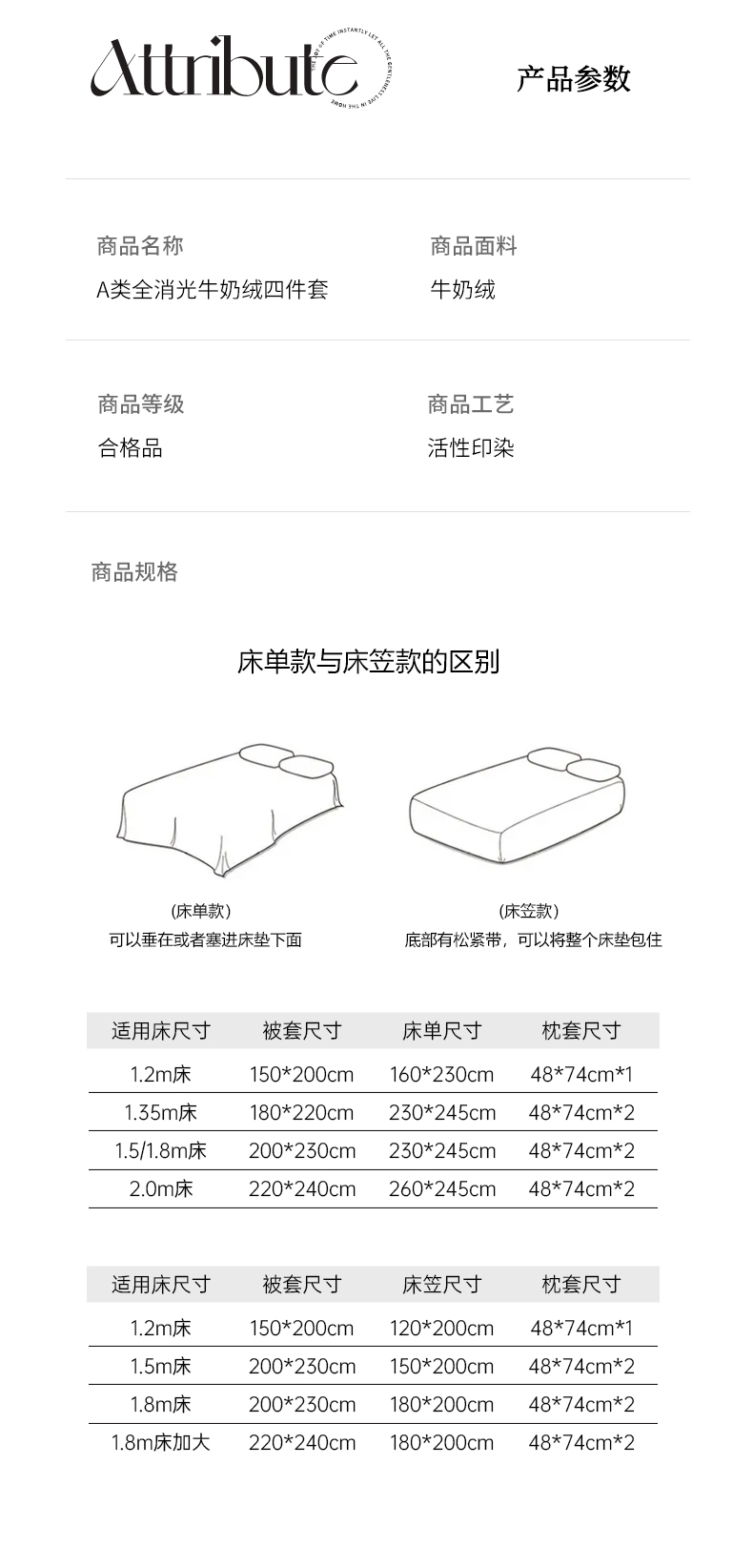 1.8m床笠四件套200x230被套 | ¥120.00 |