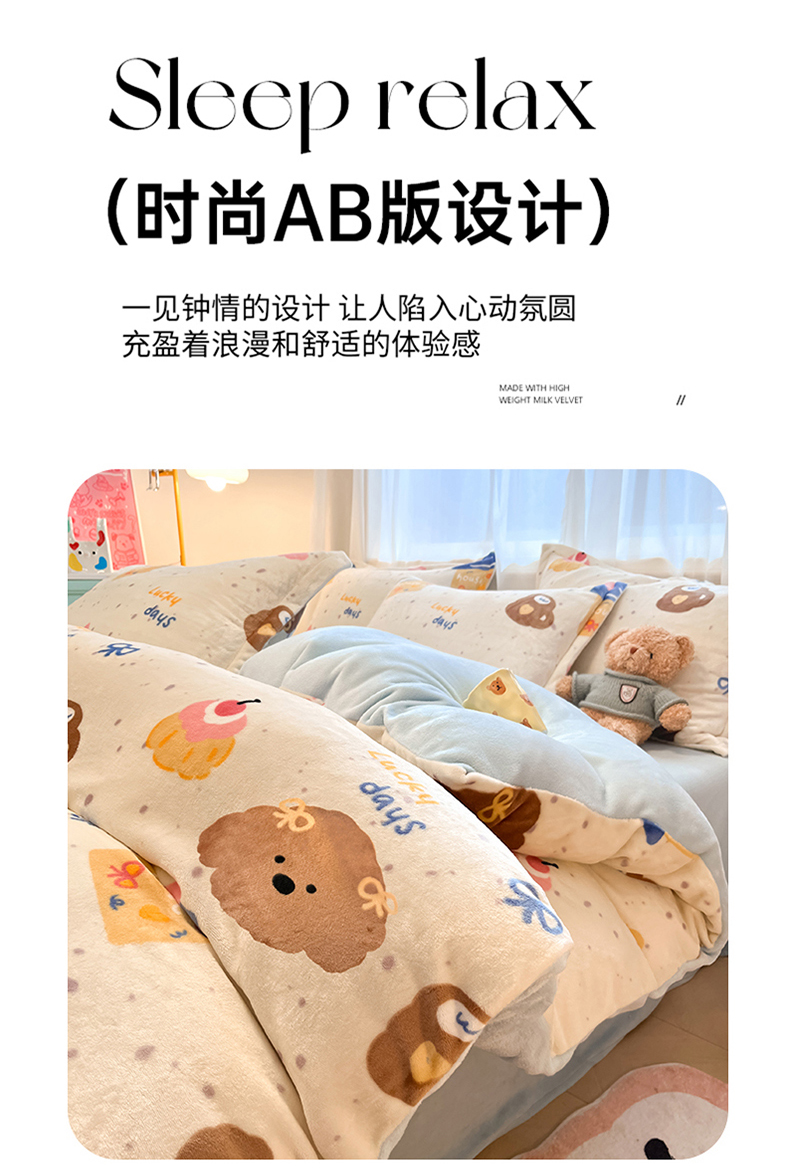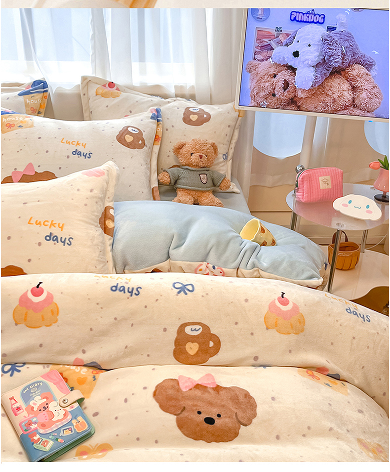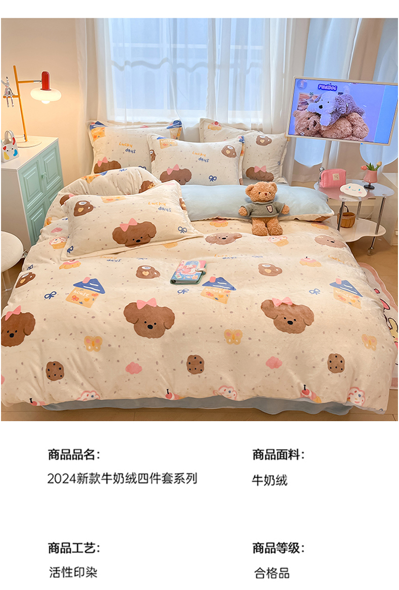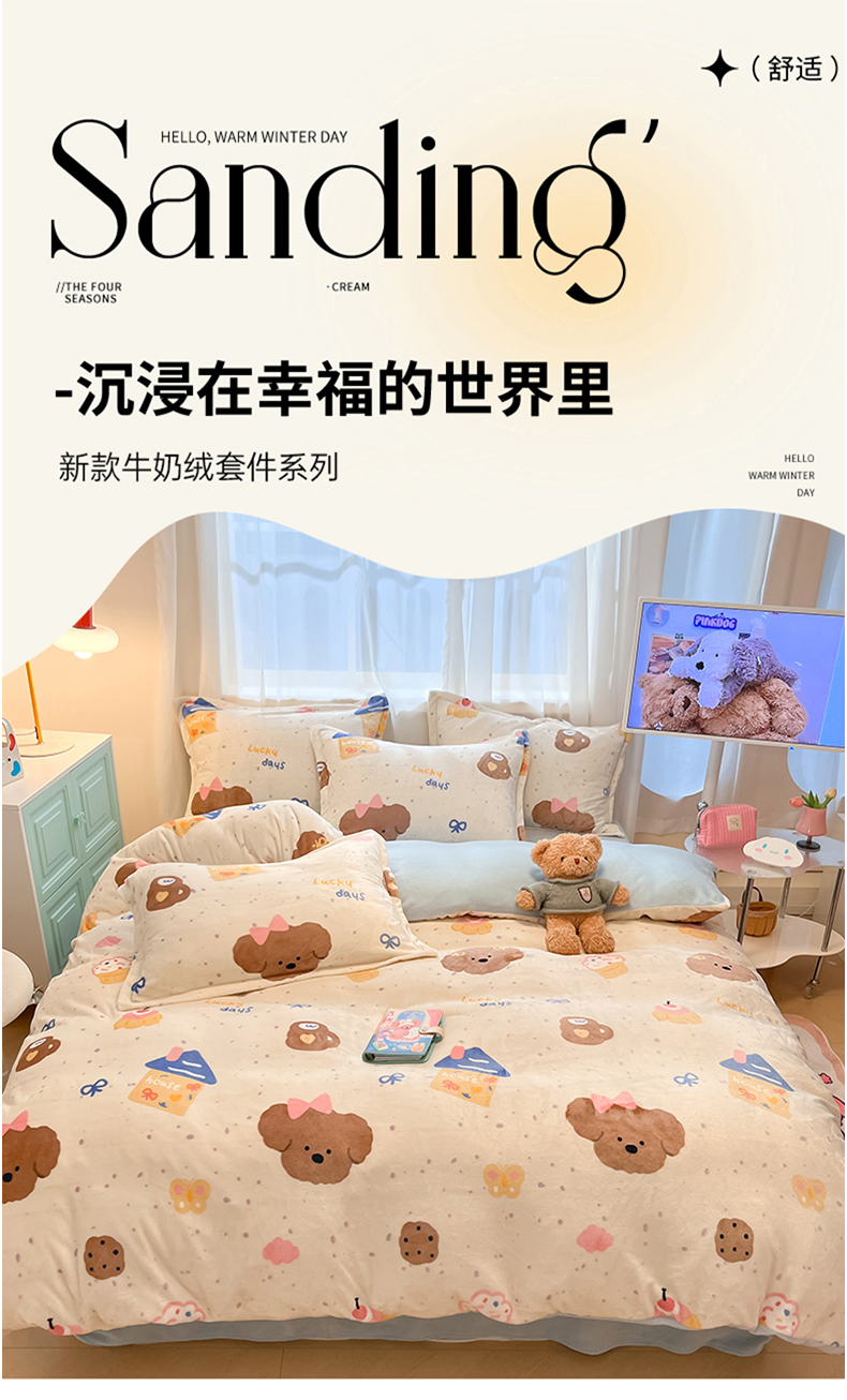当前位置: 91家纺网 > 商品网购 > 床品套件 > 四件套 > 牛奶绒四件套 > 川悦生活 2025新款高克重牛奶绒四件套-系列二 奶油噗妮-蓝