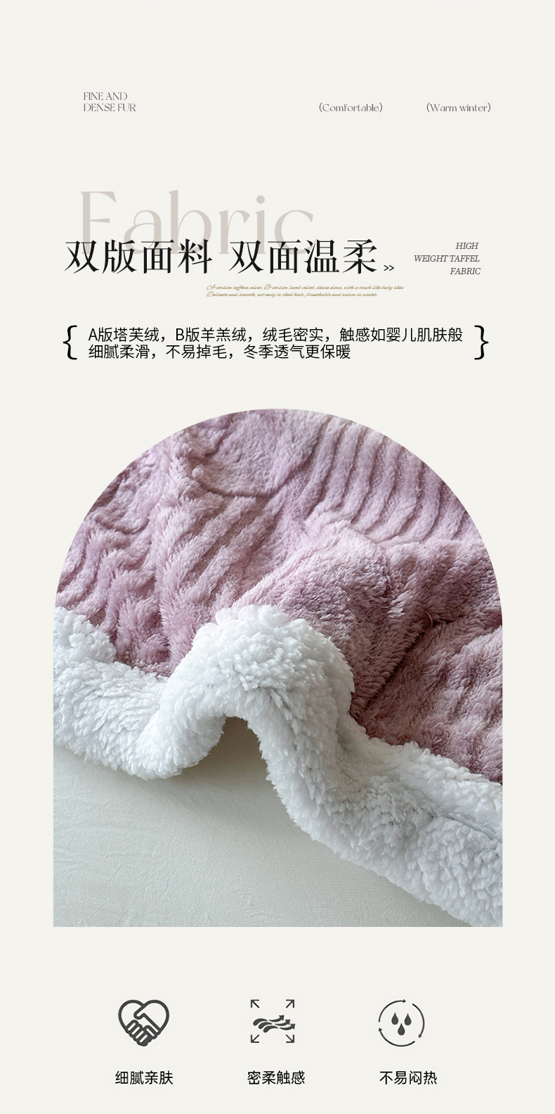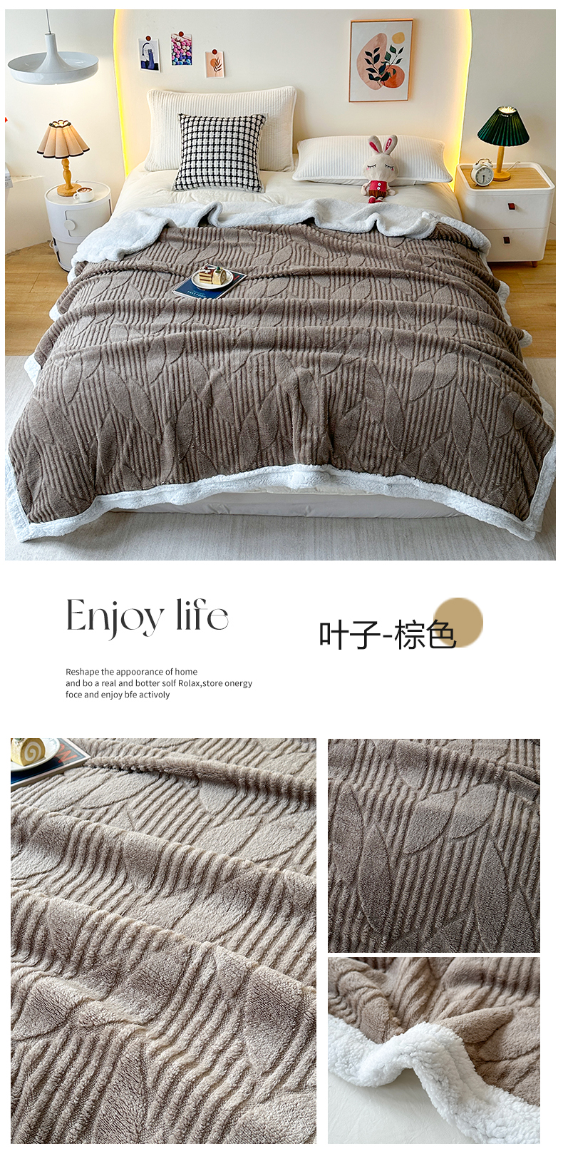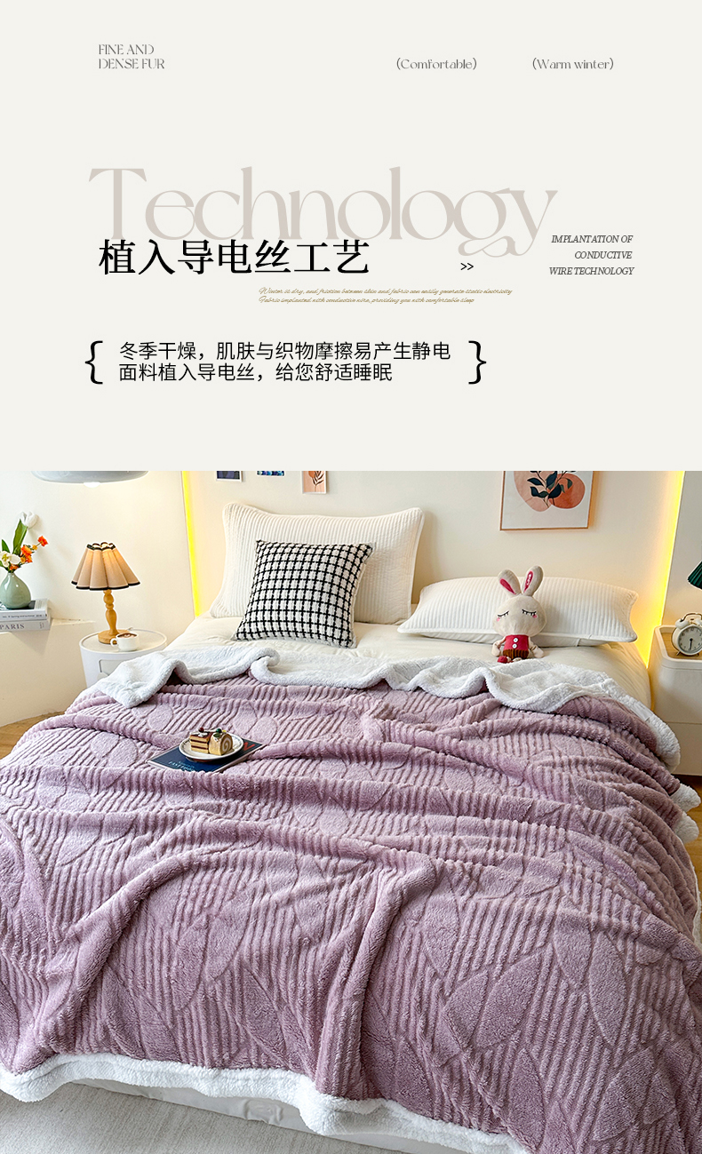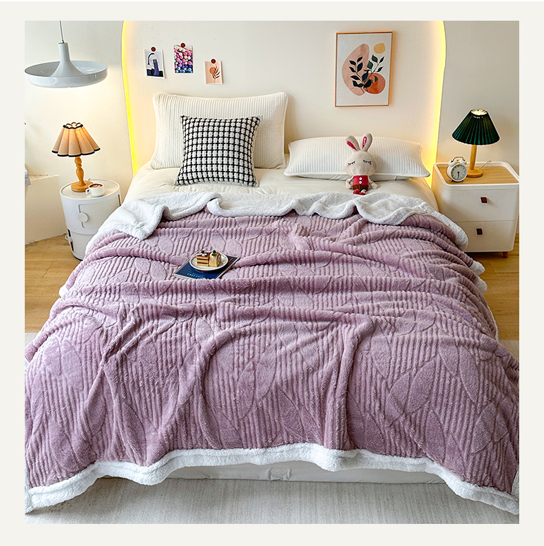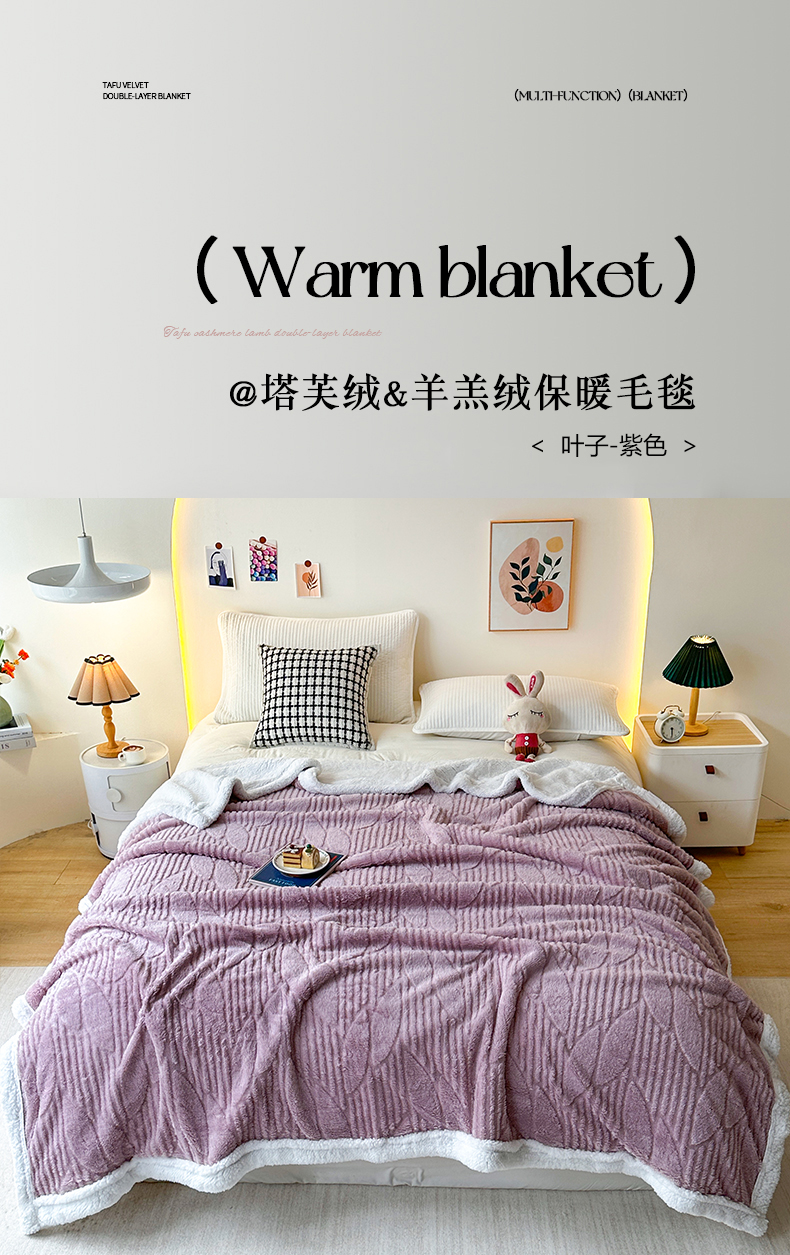 悦织湾家纺 2025新款塔芙绒羊羔绒舒棉绒毛毯叶子系列 叶子紫色
