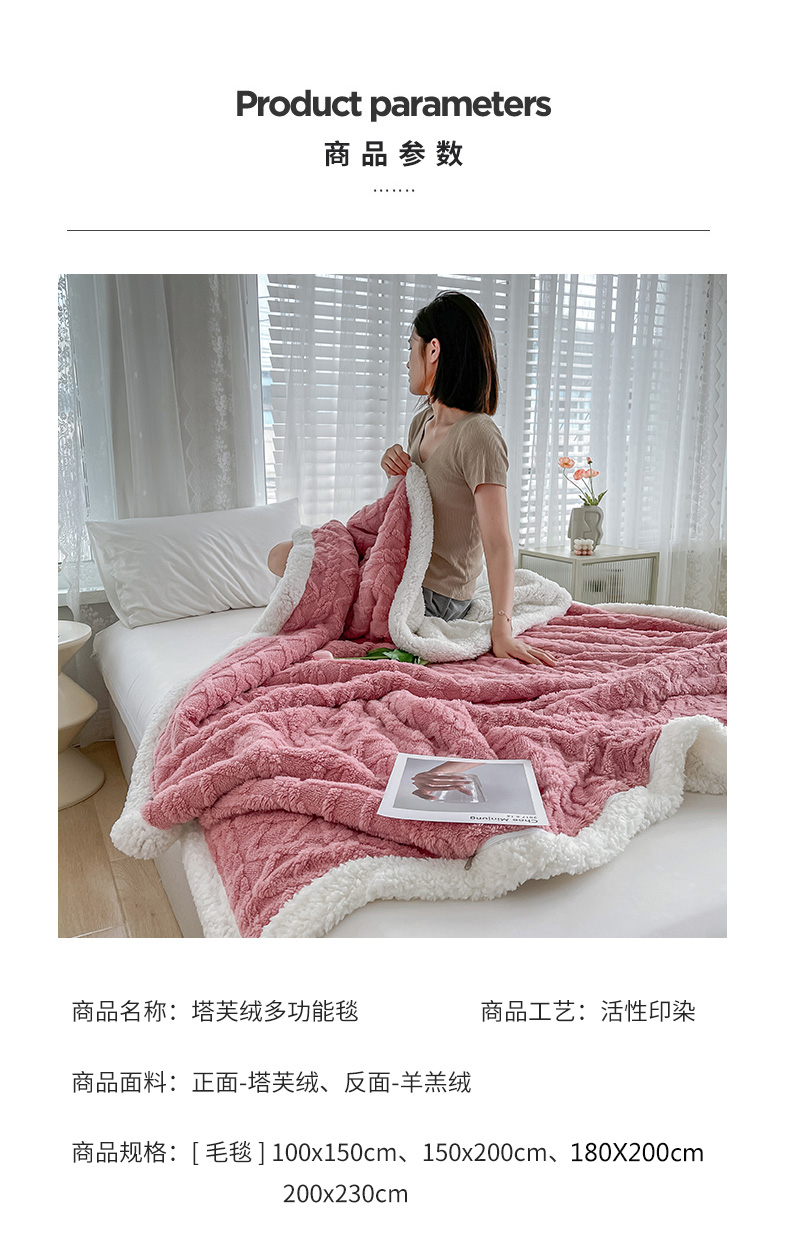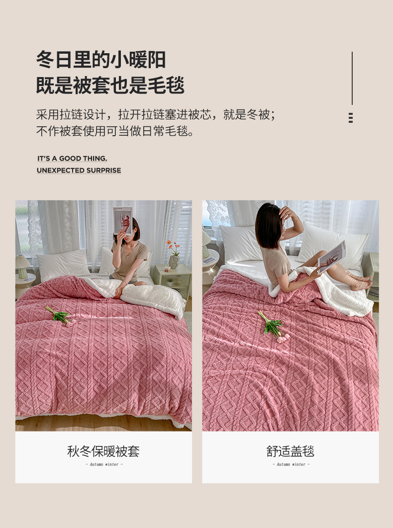 商品名称:悦织湾家纺 2025新款塔芙绒羊羔绒舒棉绒毛毯麻花格系列 麻花格-粉色