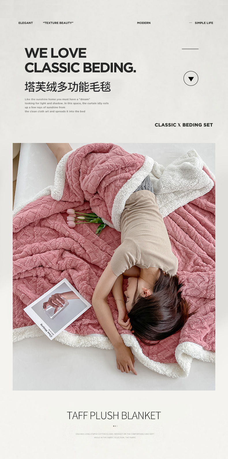 悦织湾家纺 2025新款塔芙绒羊羔绒舒棉绒毛毯麻花格系列 麻花格-粉色