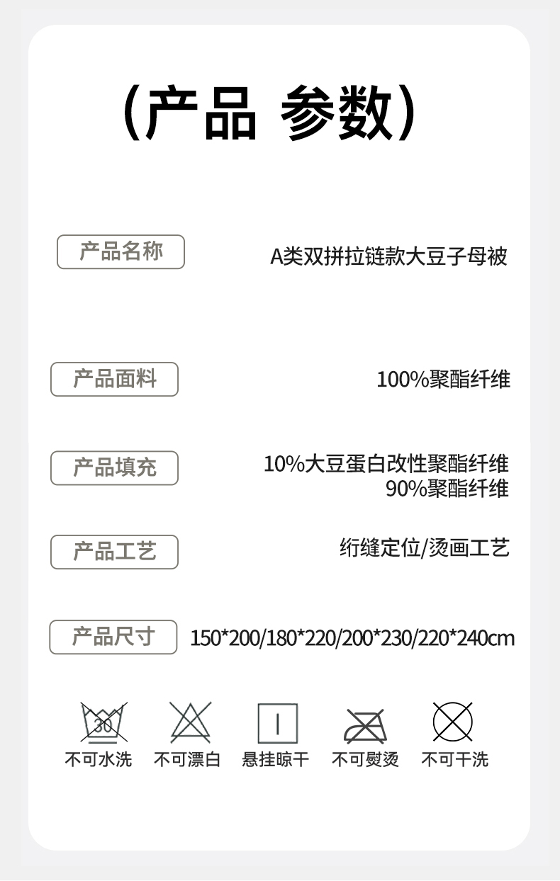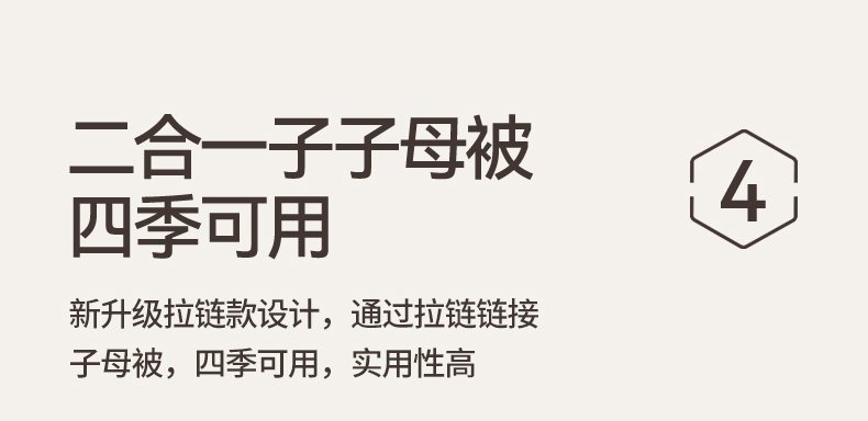 商品名称:梵蒂莎 【可检测】2025新款130克拉链子母被子被芯二合一(撞色款) 白色+灰色