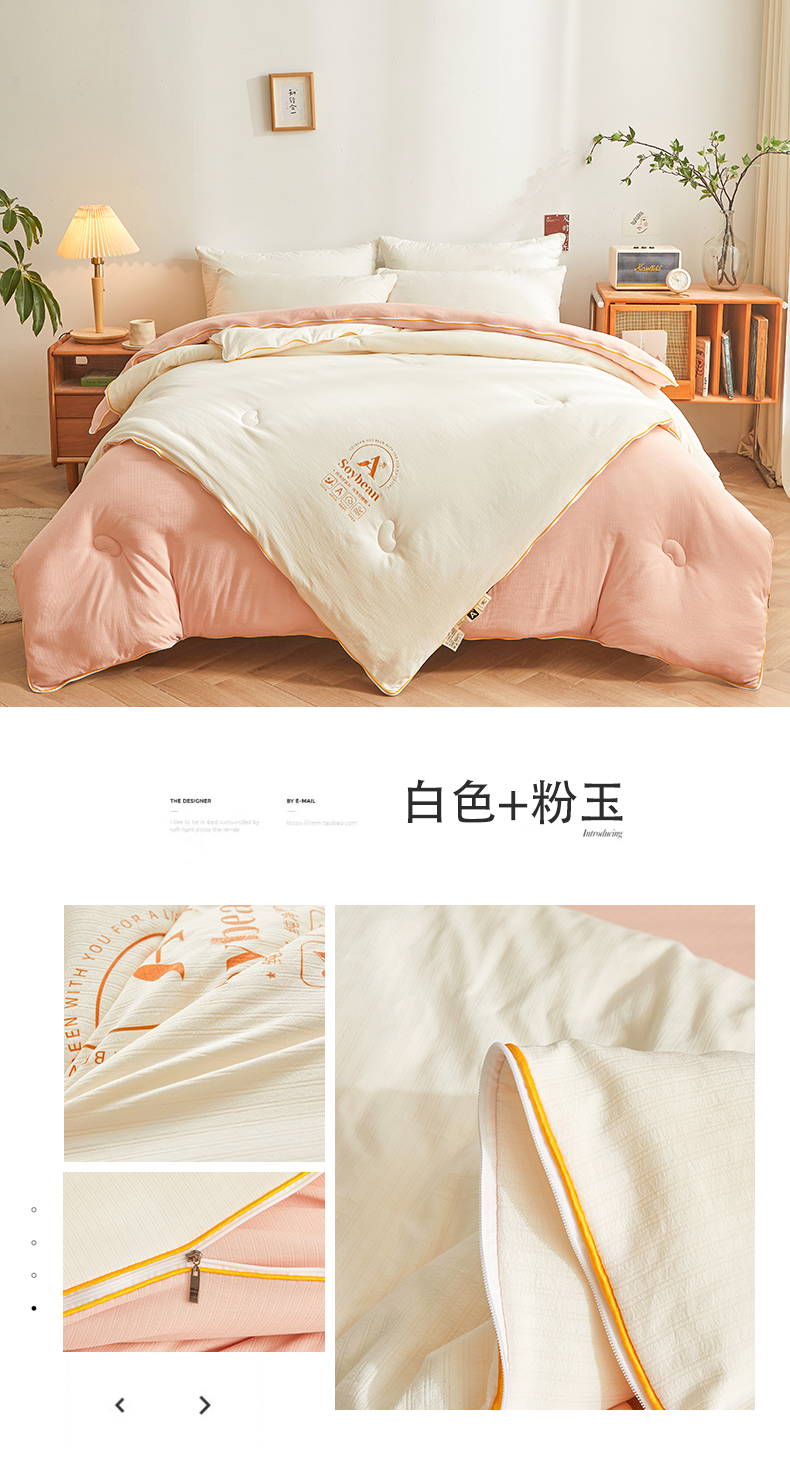 (总)梵蒂莎 【可检测】2025新款130克拉链子母被子被芯二合一(撞色款),白色+白色,白色+粉玉,白色+灰色