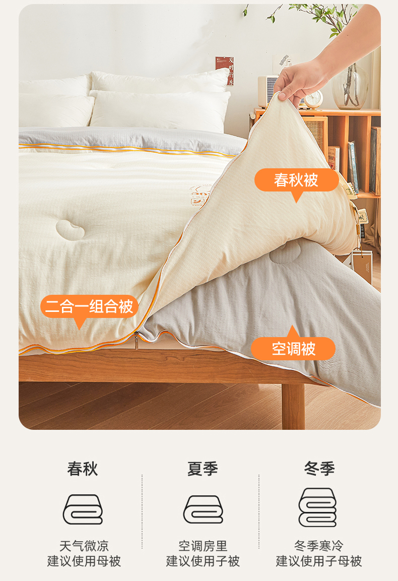 (总)梵蒂莎 2025新款可拆卸棉花被(场景1),浅海絮格,粉棕格笺,海盐小格,浅绿格影,素格灰调,素格晴蓝,雾蓝灰格,棕格漫调