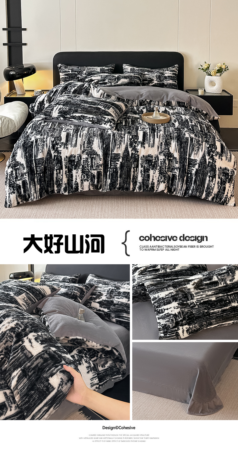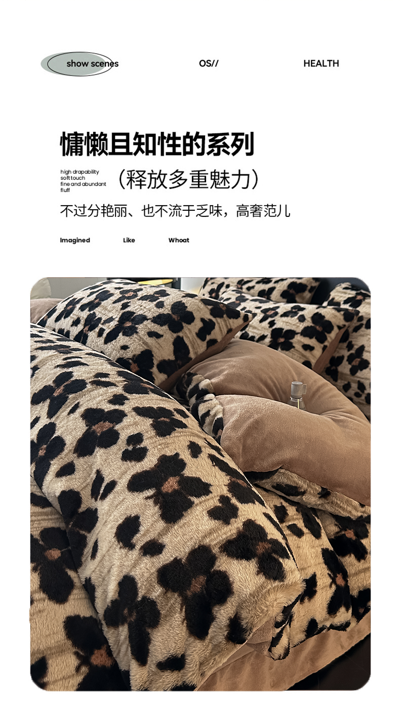 鸿羽樱家纺《原伊菲晓》 2025新款美拉德复古印花抽条兔毛绒床裙款四件套 花枝漫语