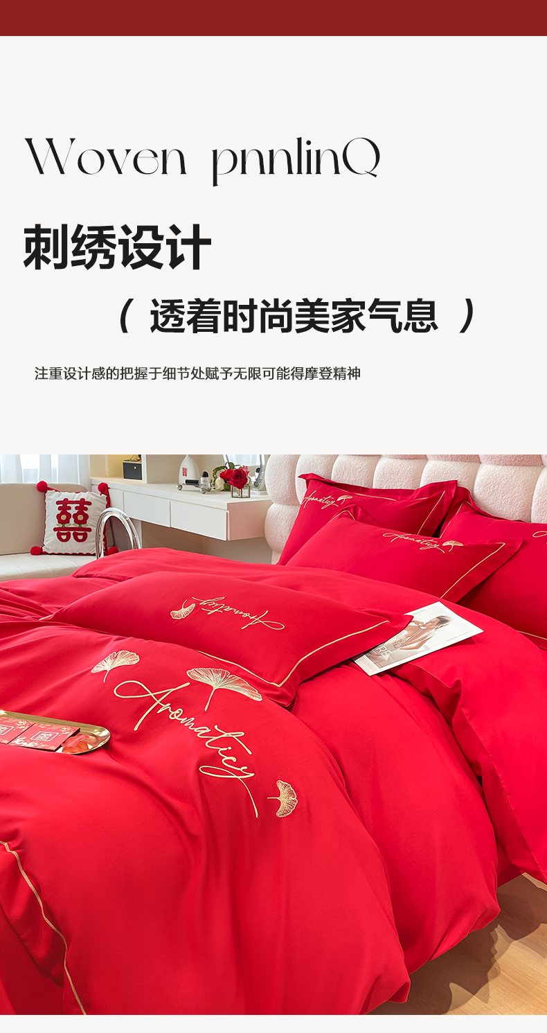 商品名称:花愿(原花纪) 2026新款水洗棉刺绣婚庆四件套系列 如意