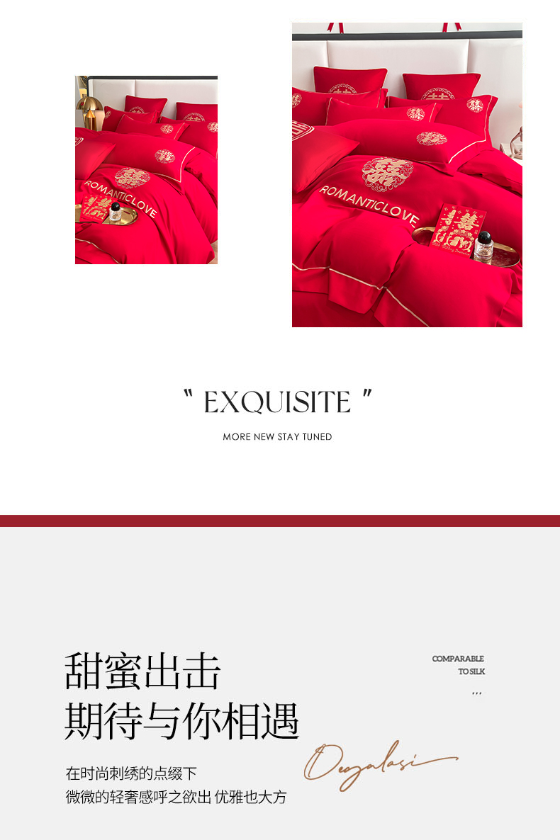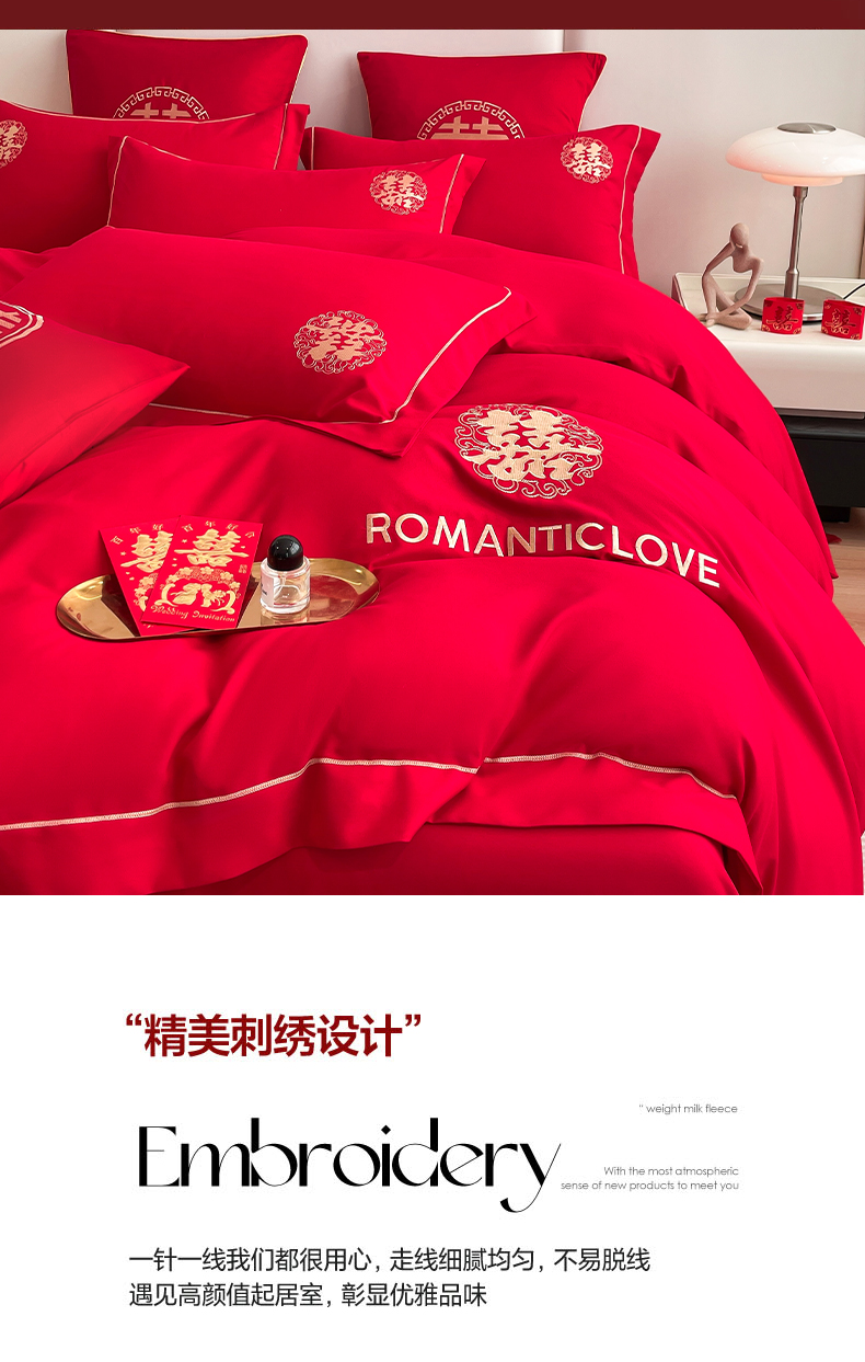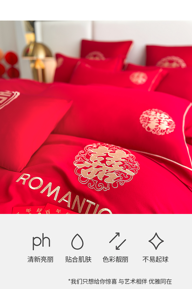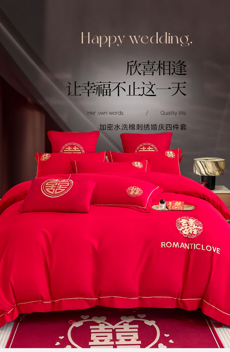 (总)花愿(原花纪) 水洗棉刺绣婚庆四件套,喜上加喜,禧悦,永结同心