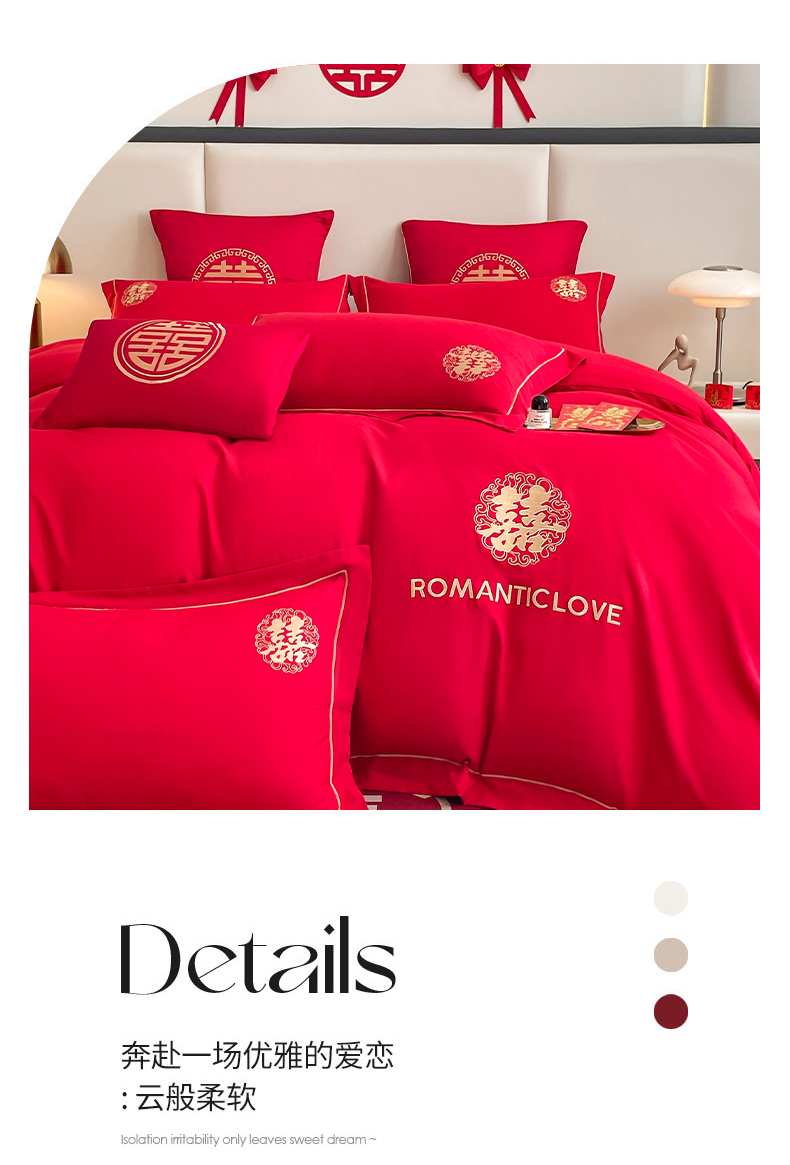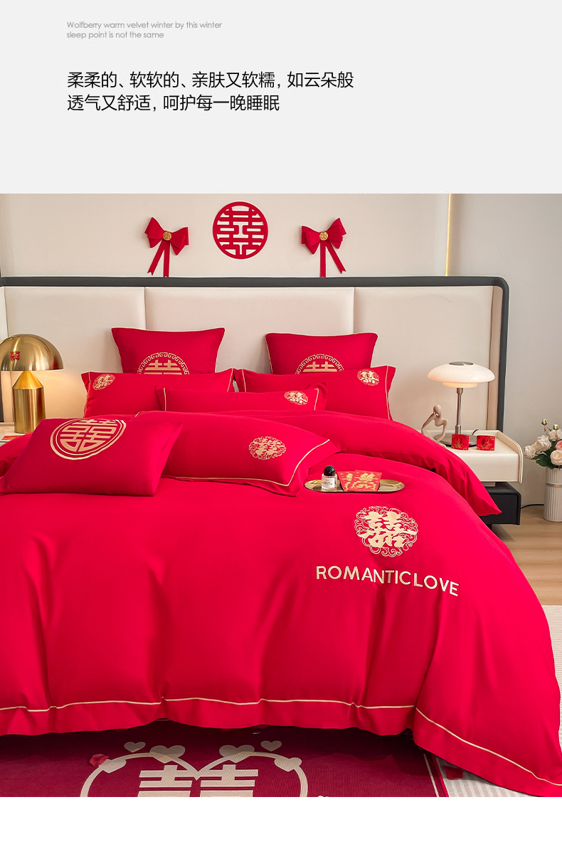 (总)花愿(原花纪) 2025新款水洗棉刺绣婚庆四件套系列,丹枫迎喜,欢喜,良缘,龙凤欢喜,玫瑰之恋,美满,如意,天禧,唯一,喜爱,心心相印,幸福,永恒之恋,钟爱一生