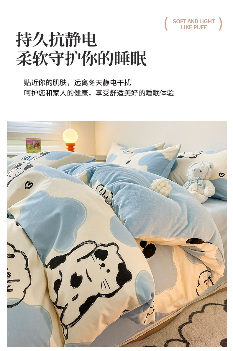 当前位置: 91家纺网 > 商品网购 > 床品套件 > 四件套 > 牛奶绒四件套 > 晨希家居 2025A面40支全棉印花B版高克重牛奶绒棉加绒多规格套件棉加绒-奶牛猫