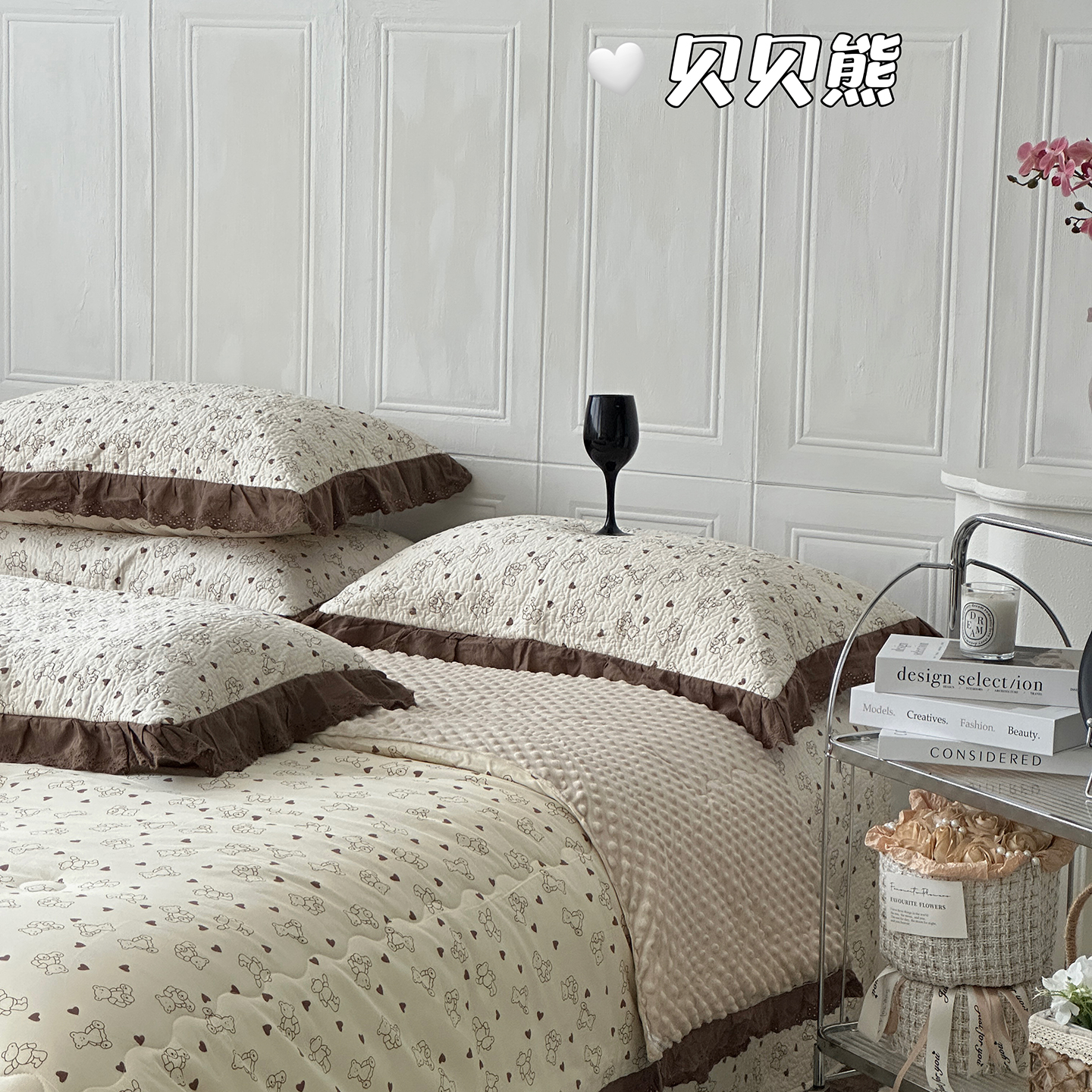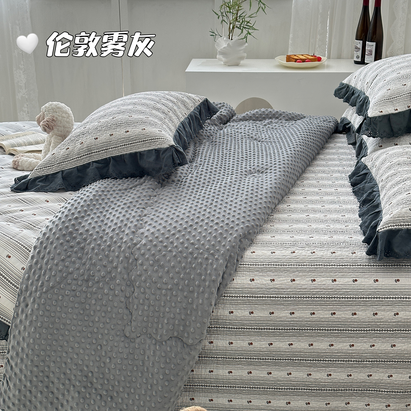 商品名称:佰织鑫家居 2025秋冬新品全棉法式床盖款豆豆被四件套 伦敦雾灰