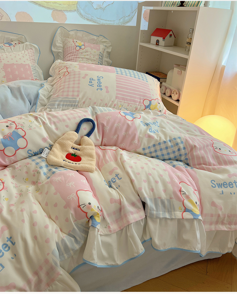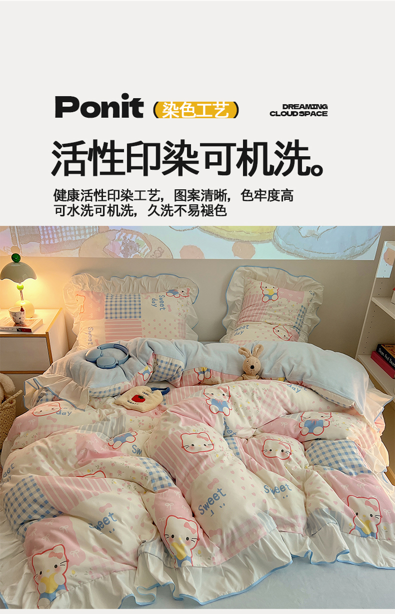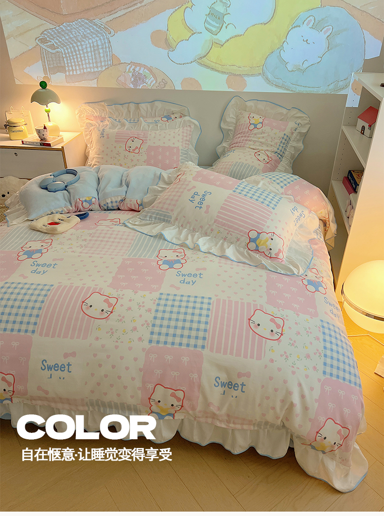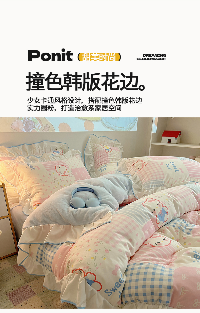 当前位置: 91家纺网 > 商品网购 > 床品套件 > 四件套 > 牛奶绒四件套 > 桃心家居 2025新款A类韩版花边撞色云柔水洗棉加厚牛奶绒少女猫咪棉绒四件套系列 绒花边-花甜小猫