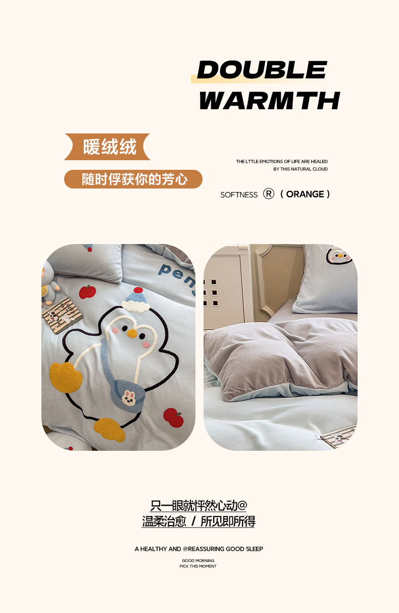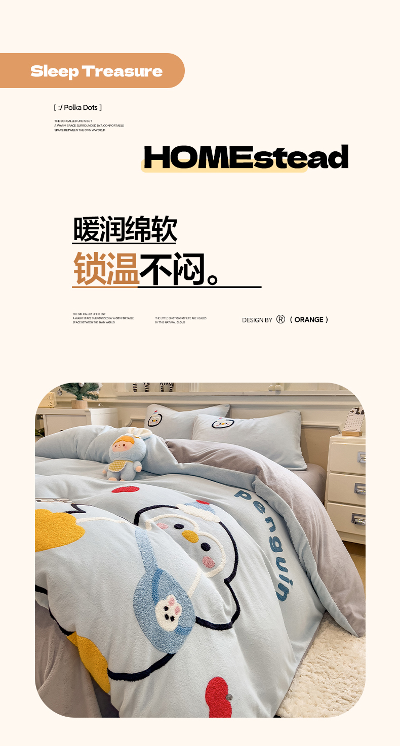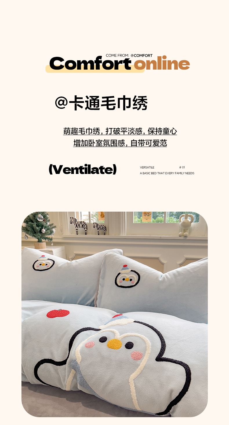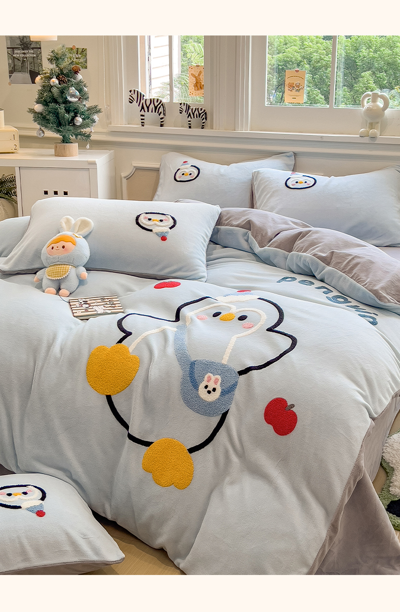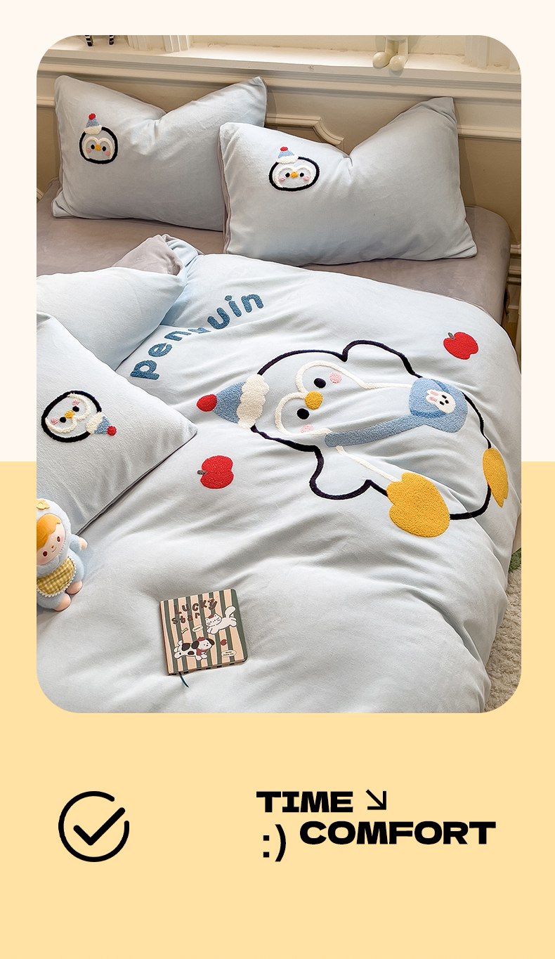 当前位置: 91家纺网 > 商品网购 > 床品套件 > 四件套 > 牛奶绒四件套 > 悦织语 2025新款加厚200克高克重毛巾绣牛奶绒四件套 快乐企鹅-浅蓝