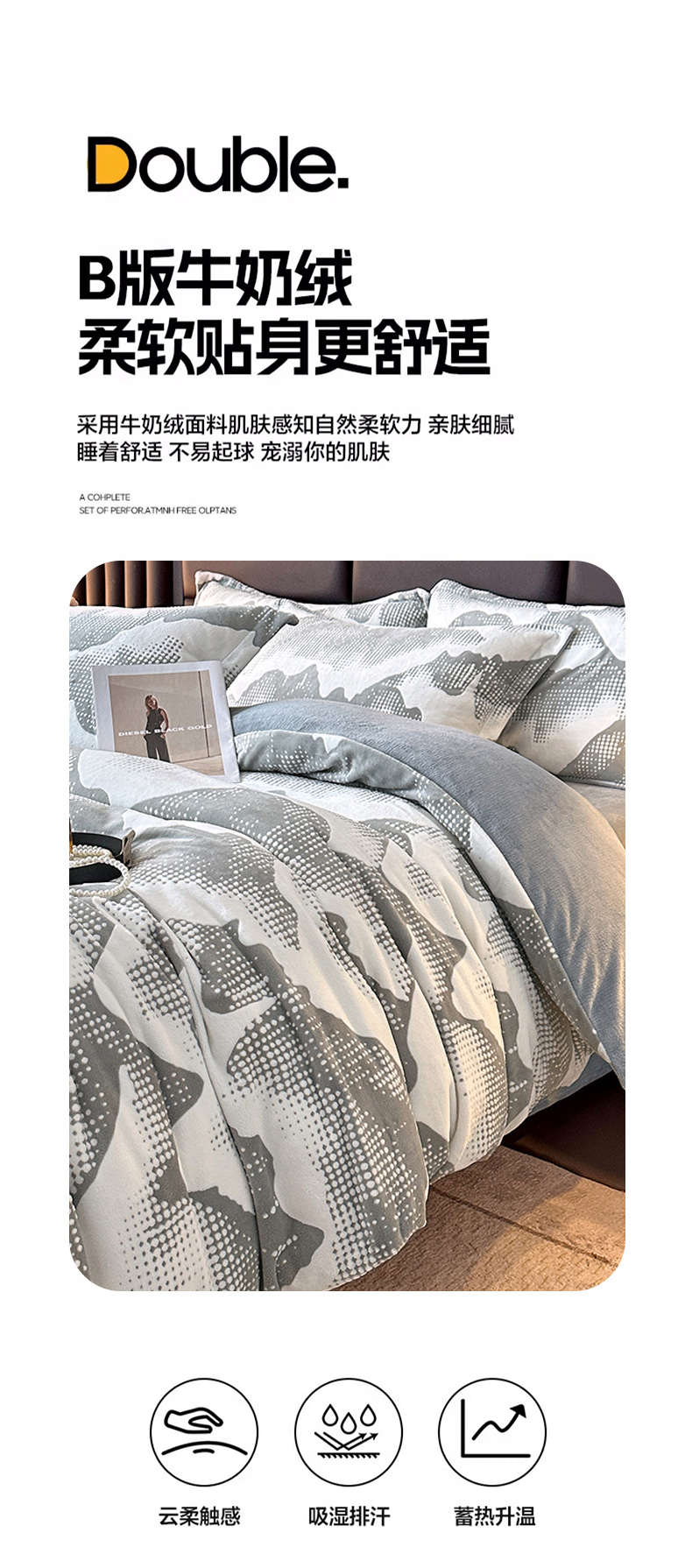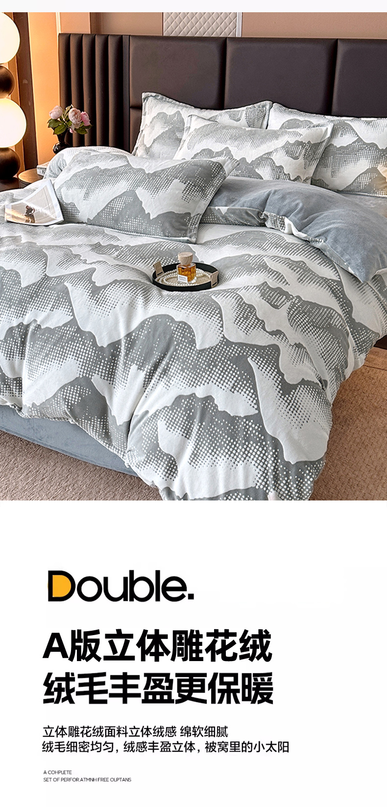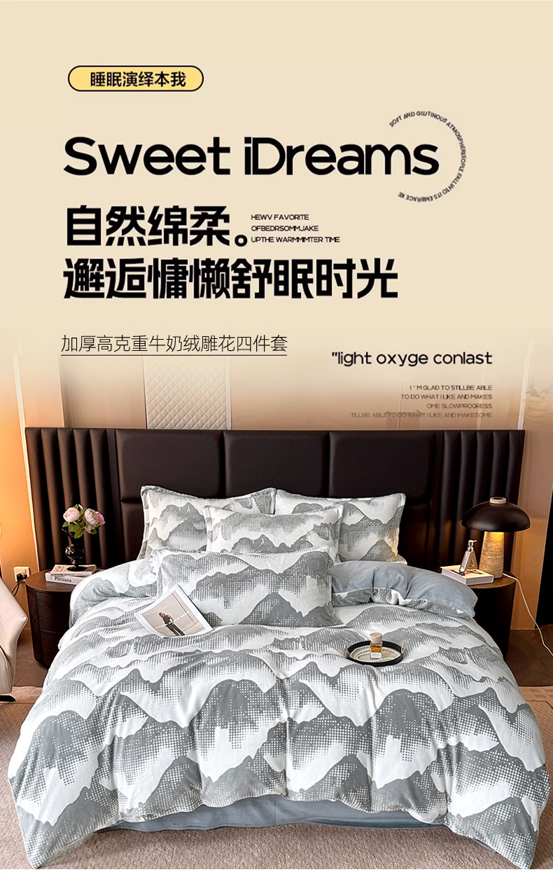 当前位置: 91家纺网 > 商品网购 > 床品套件 > 四件套 > 牛奶绒四件套 > 家贝爱 2025新款230克烂花雕花牛奶绒四件套 诗情画意灰