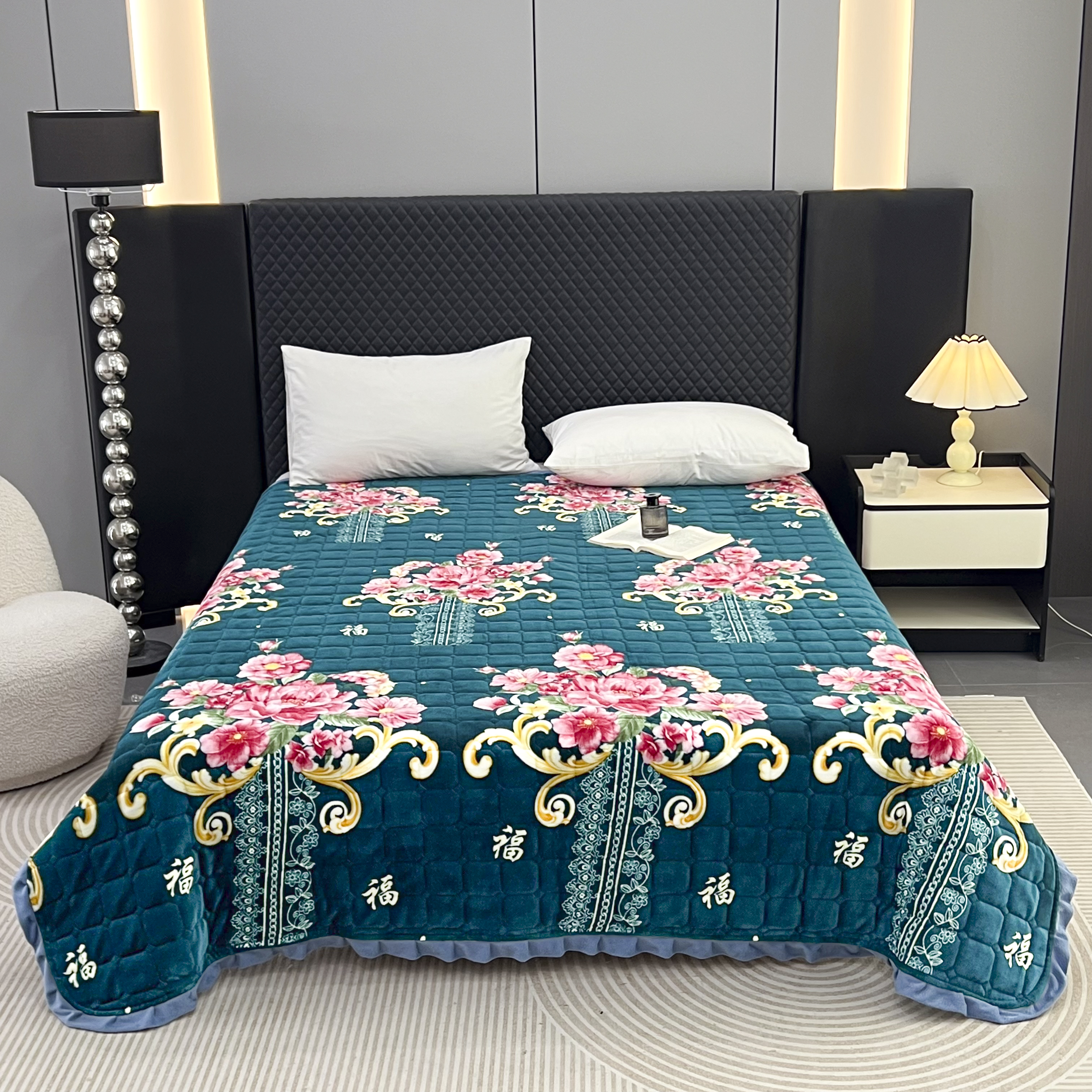 有品 2025年牛奶绒花边5D跑量款夹棉床盖 墨韵