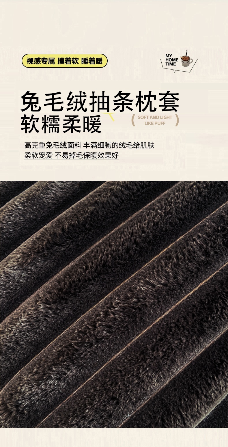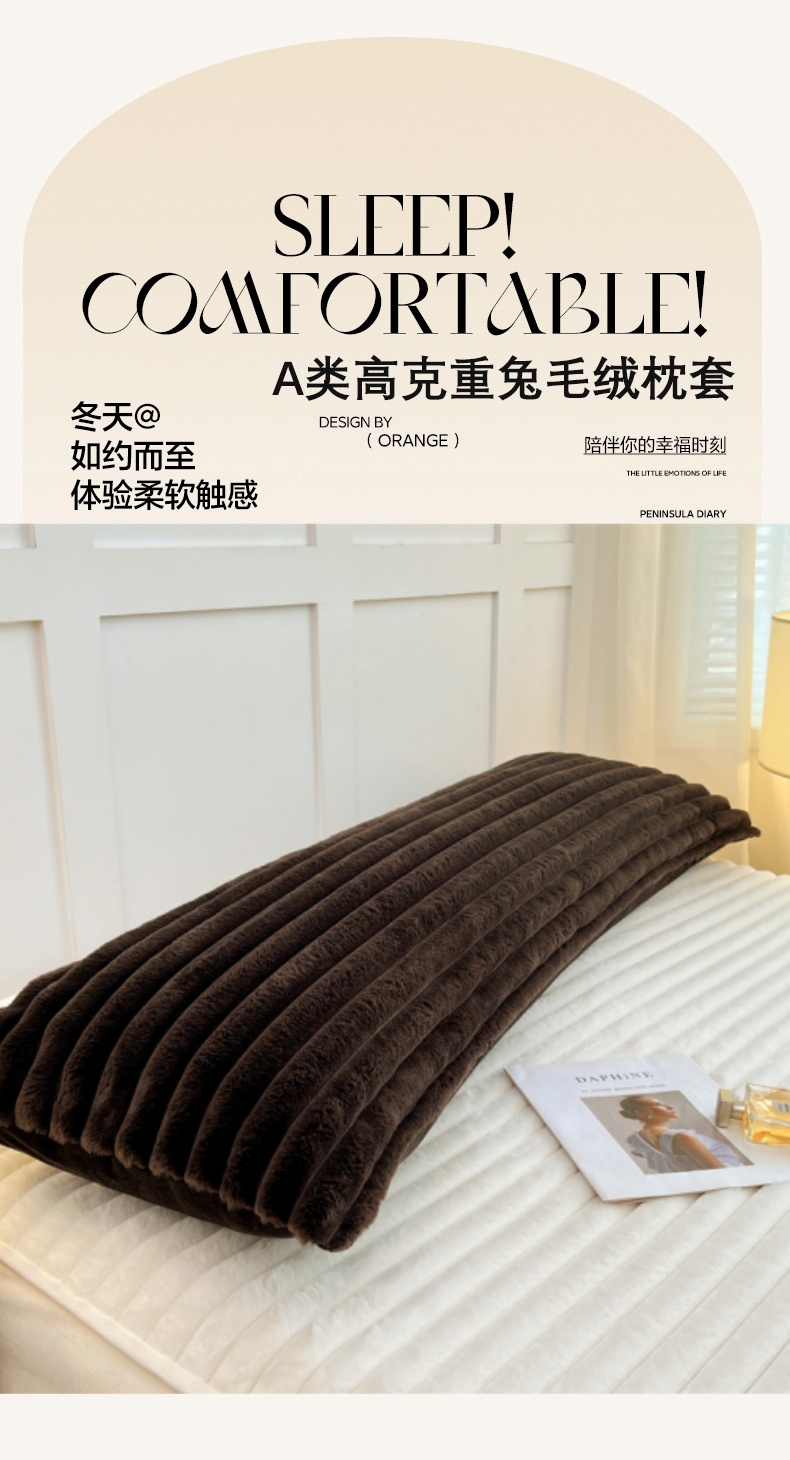• 91家纺网 家纺一手货源 找家纺 梦舒羽 2025新款兔毛绒双人枕套牛奶绒加长法兰绒枕芯套法莱绒枕头套-抽条 兔毛绒抽条-咖啡色