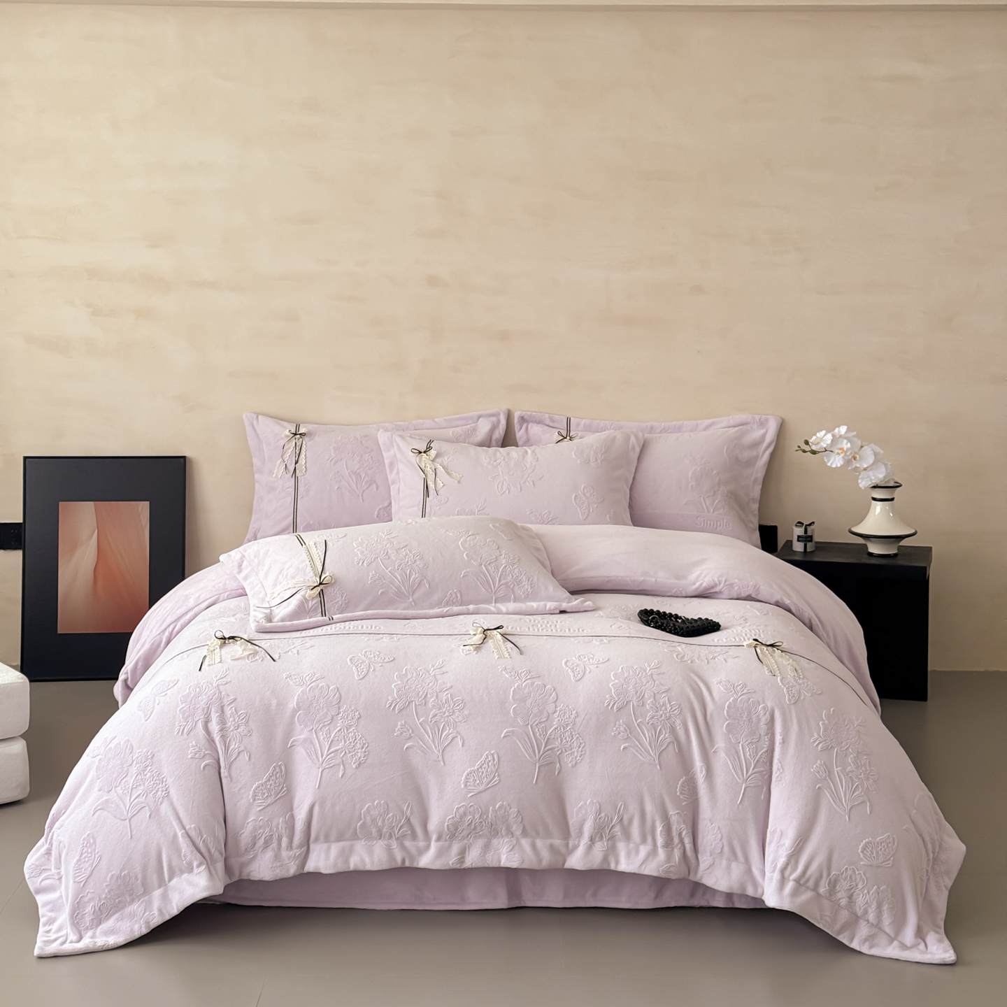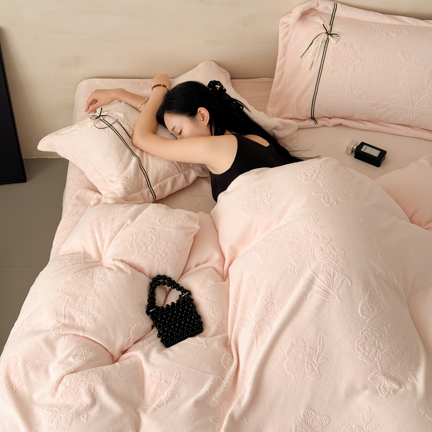 (总)若未家居 LOVEWE HOUSE 2025新款250克法式轻奢牛奶绒雕花工艺款四件套-蝶屿