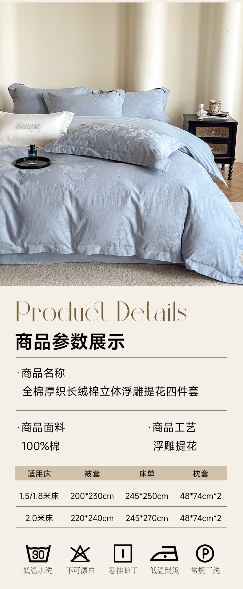 商品名称:(总)魅都2025秋冬 全棉厚织长绒棉磨毛立体浮雕提花四件套全棉四件套微风知晓