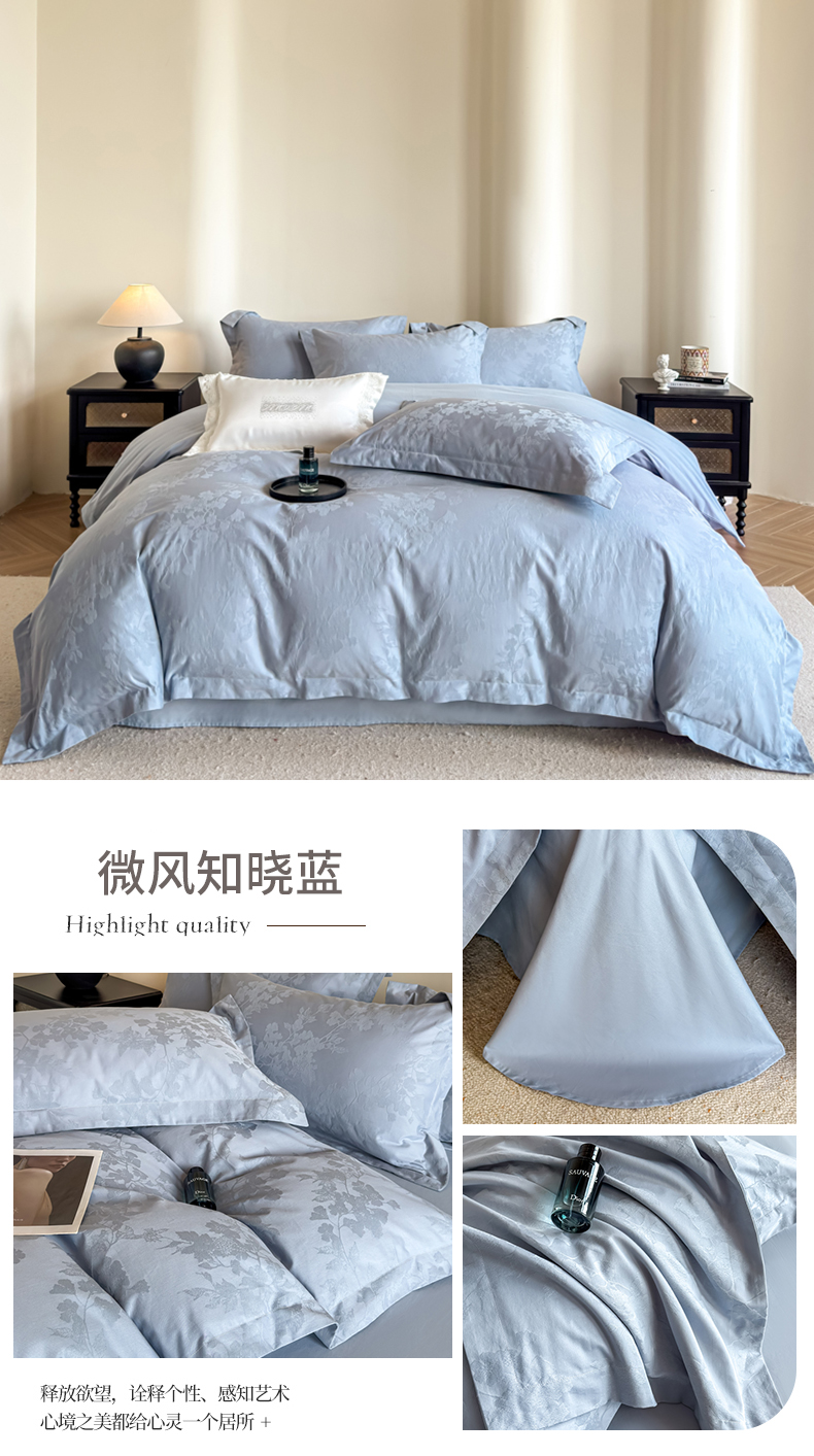 (总)魅都2025秋冬 全棉厚织长绒棉磨毛立体浮雕提花四件套全棉四件套微风知晓,微风知晓蓝