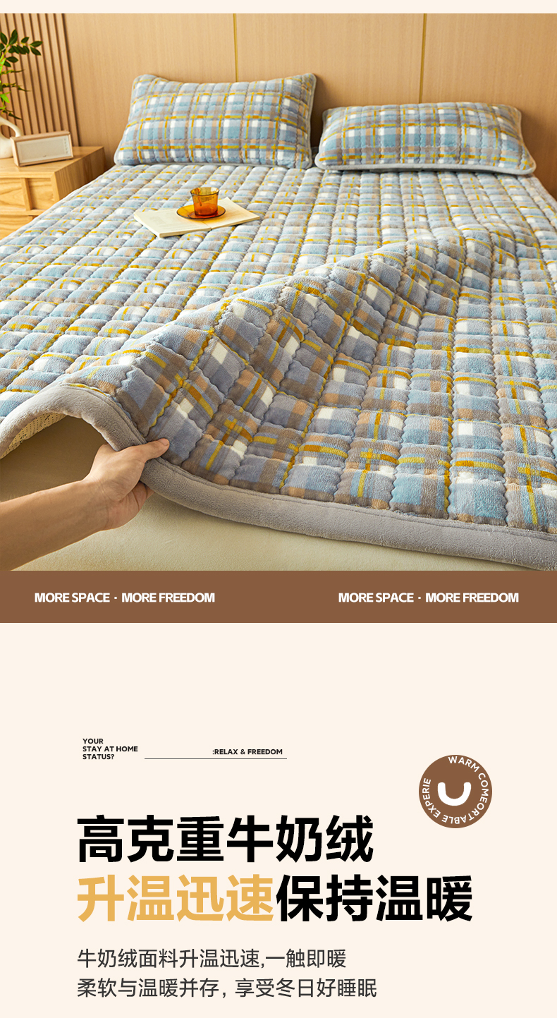 当前位置: 91家纺网 > 商品网购 > 床垫/床褥 > 普通床垫 > 澳梵家居 2025新款无印风牛奶绒夹棉床护垫 蓝粉格调