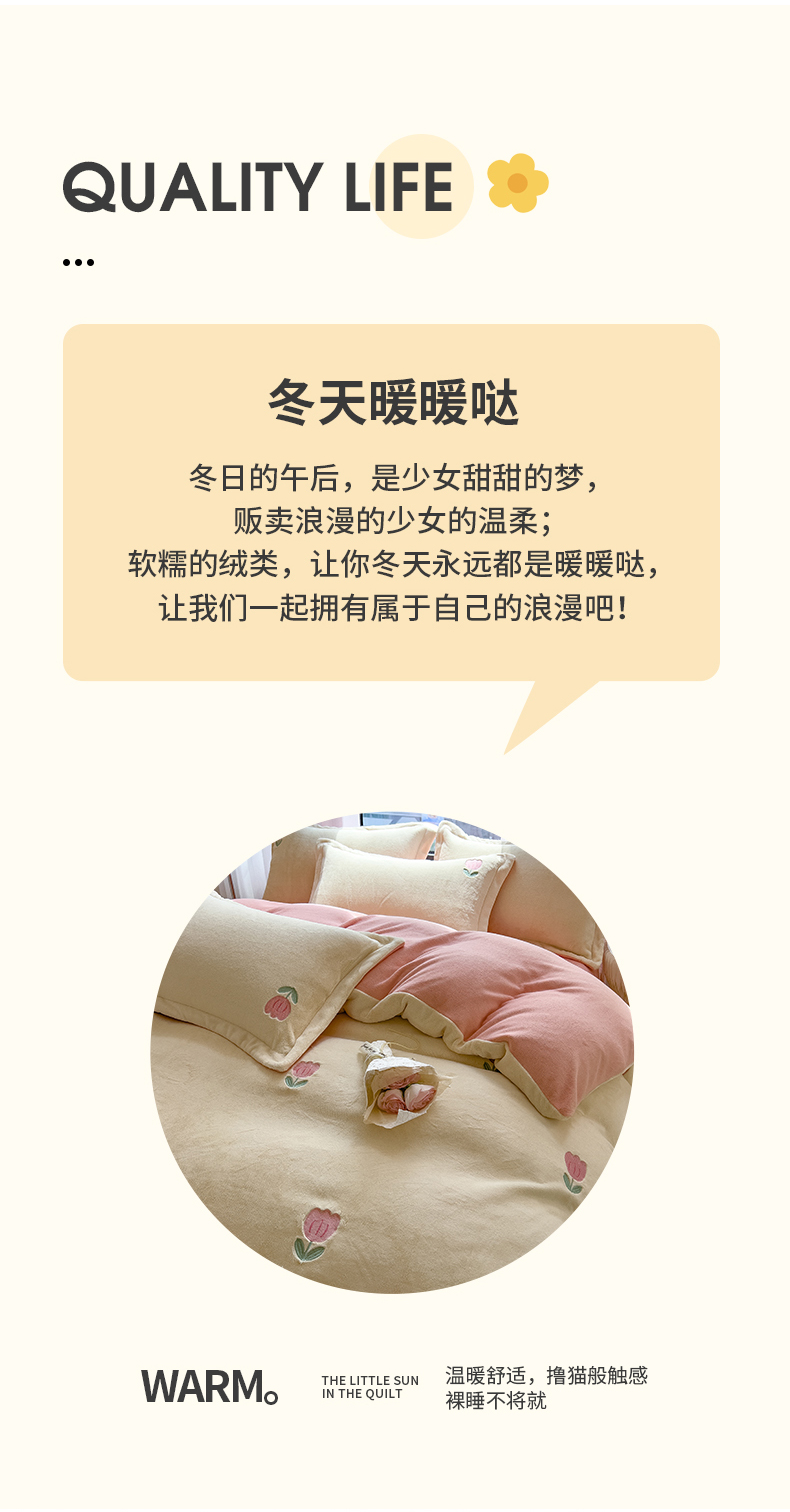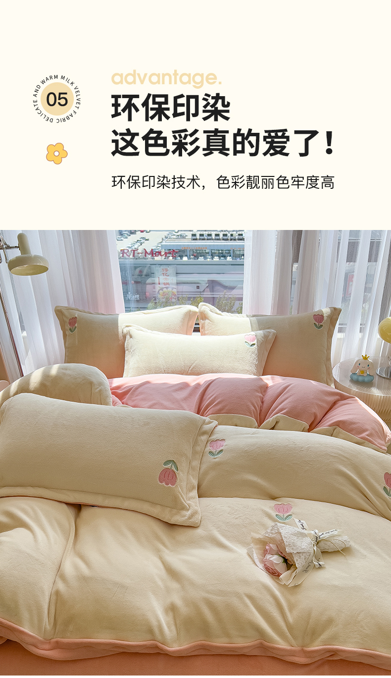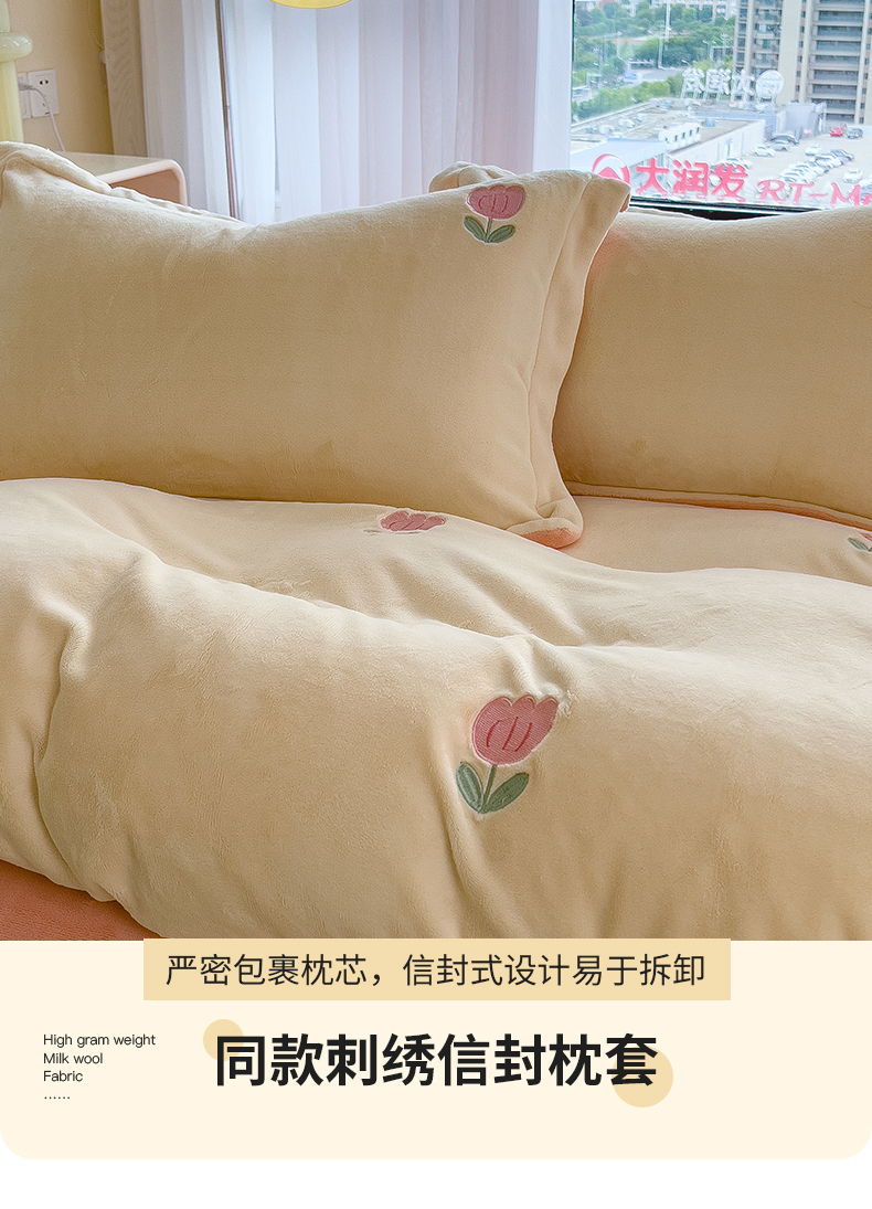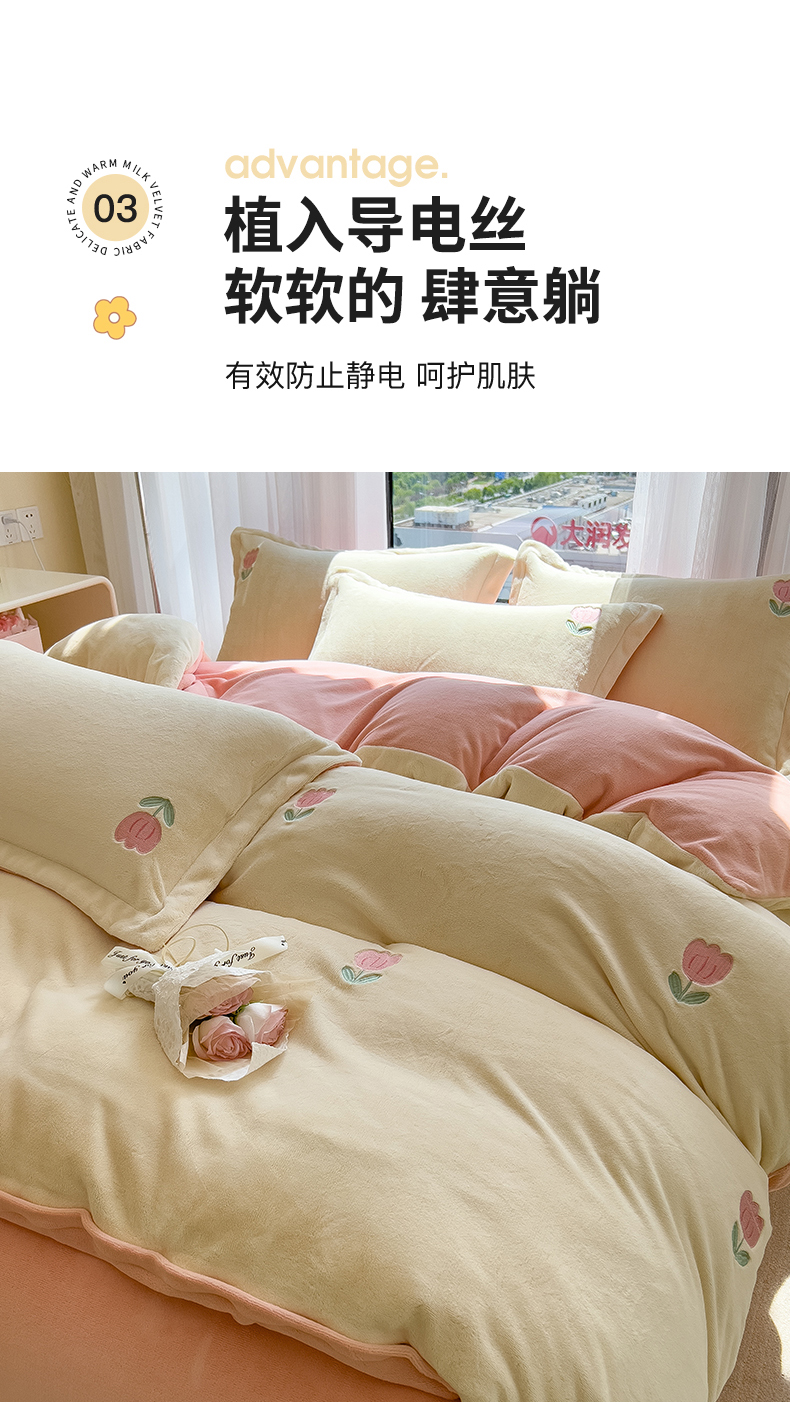商品名称:丽美人家纺 2025新款牛奶绒卡通刺绣系列四件套 郁金香-粉