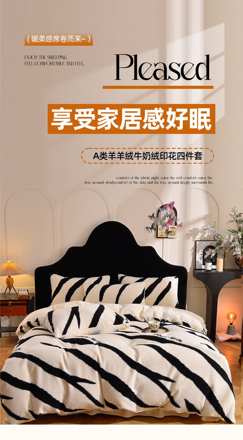 (总)同田家纺 2025新款A类羊羊绒牛奶绒印花四件套,熊猫,豹纹-粉,豹纹-咖,灰格,咖啡格,蓝格,条纹-白,条纹-粉,条纹-灰,条纹-咖,香蝶,伊莉莎-粉,伊莉莎-咖,紫蝶