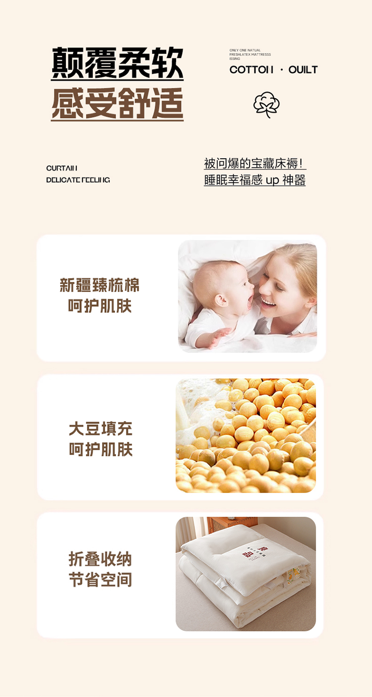 当前位置: 91家纺网 > 商品网购 > 床垫/床褥 > 普通床垫 > (总)薇玛仕 2025新款新疆臻梳棉良品大豆床褥子单双人床垫子