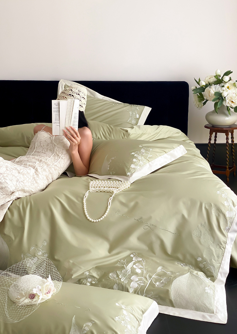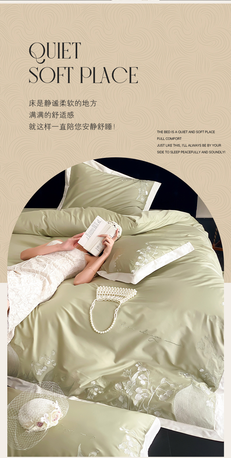 云栖家居 2025新品50支全棉长绒棉刺绣纯棉绣花四件套-铃兰(控价不得低于328) 铃兰-绿