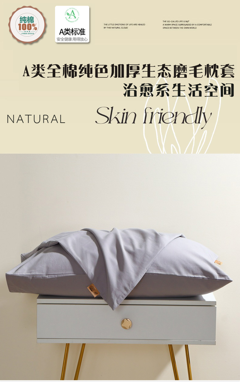 商品名称:晶缦家纺 2025新款100%纯棉13376纯色喷气全棉磨毛四件套和单品被套床单床笠枕套-单枕套 暖芸馨-浅青灰