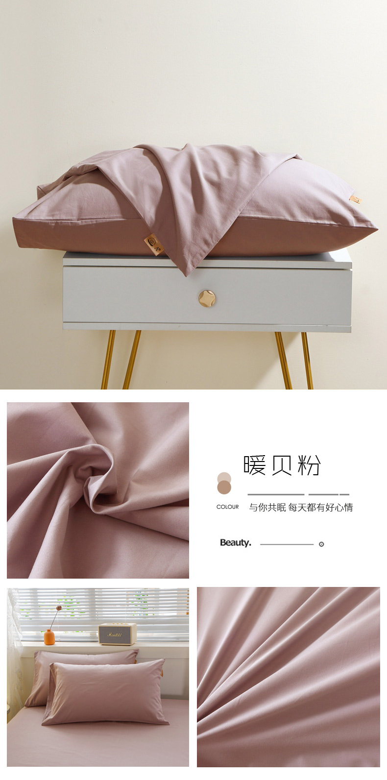 晶缦家纺 2025新款100%纯棉13376纯色喷气全棉磨毛四件套和单品被套床单床笠枕套-单枕套 暖芸馨-浅青灰