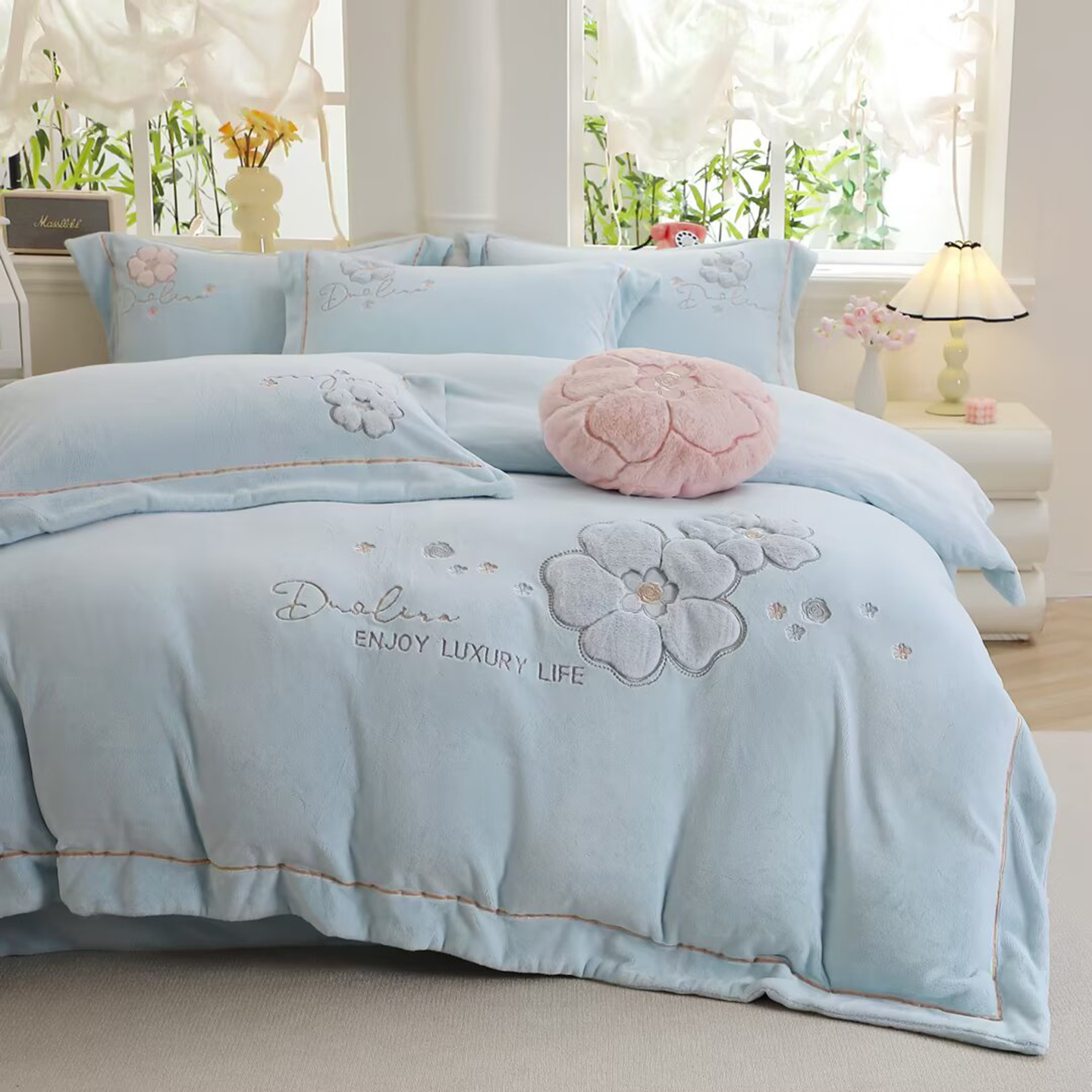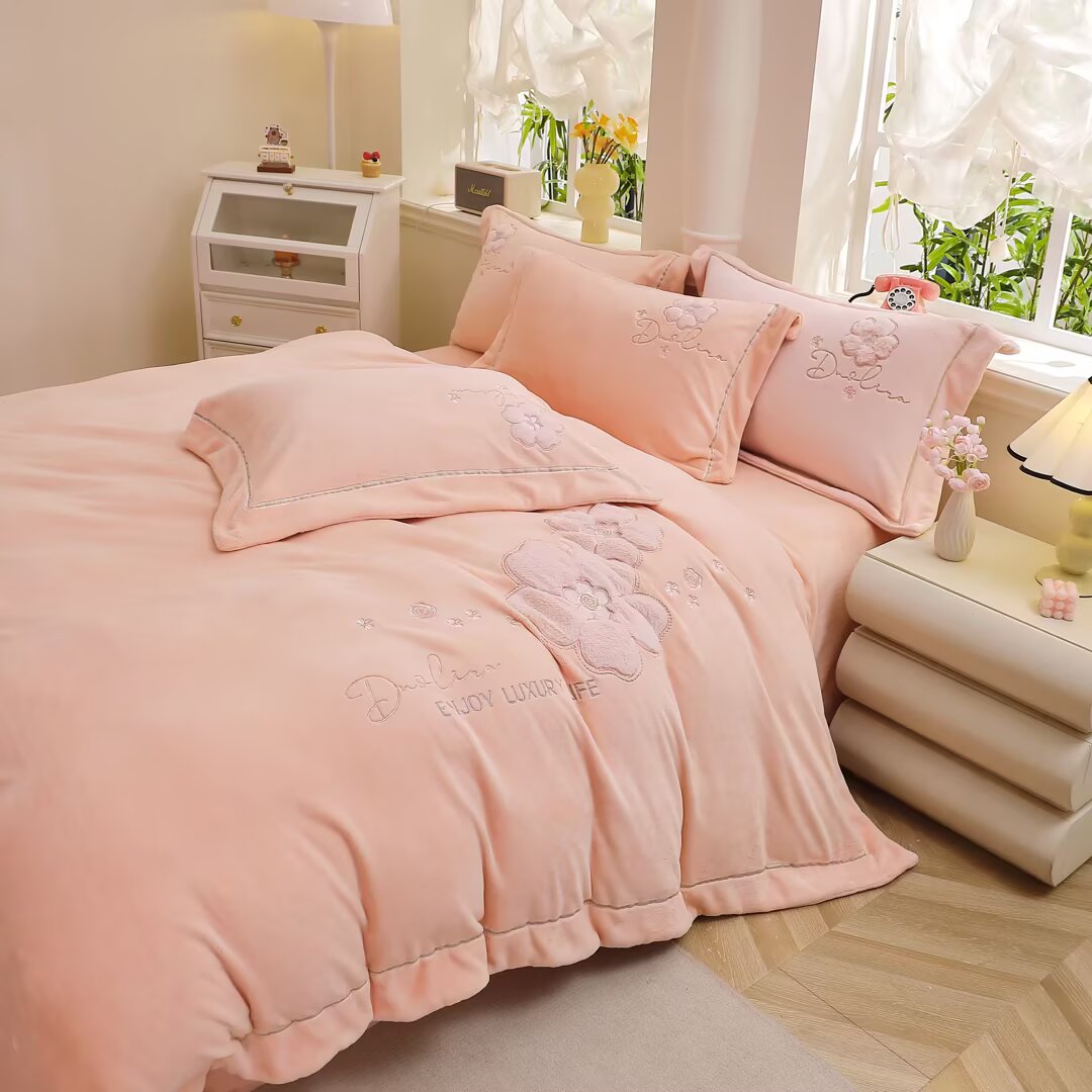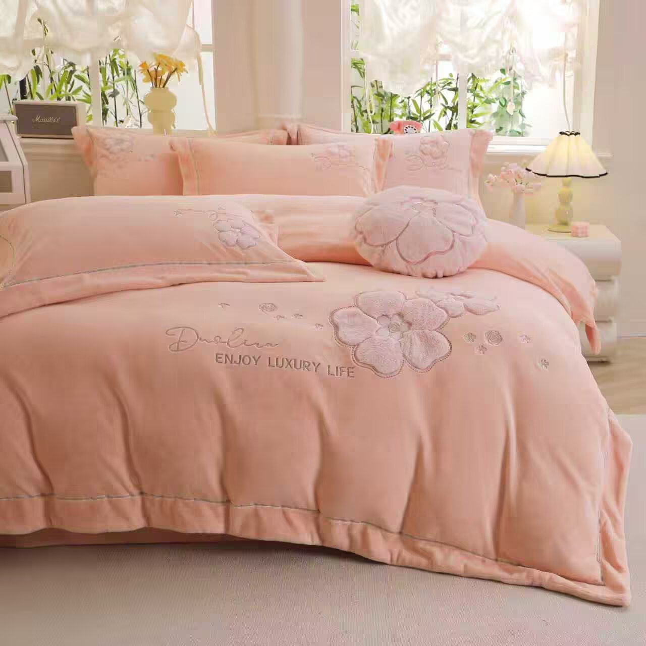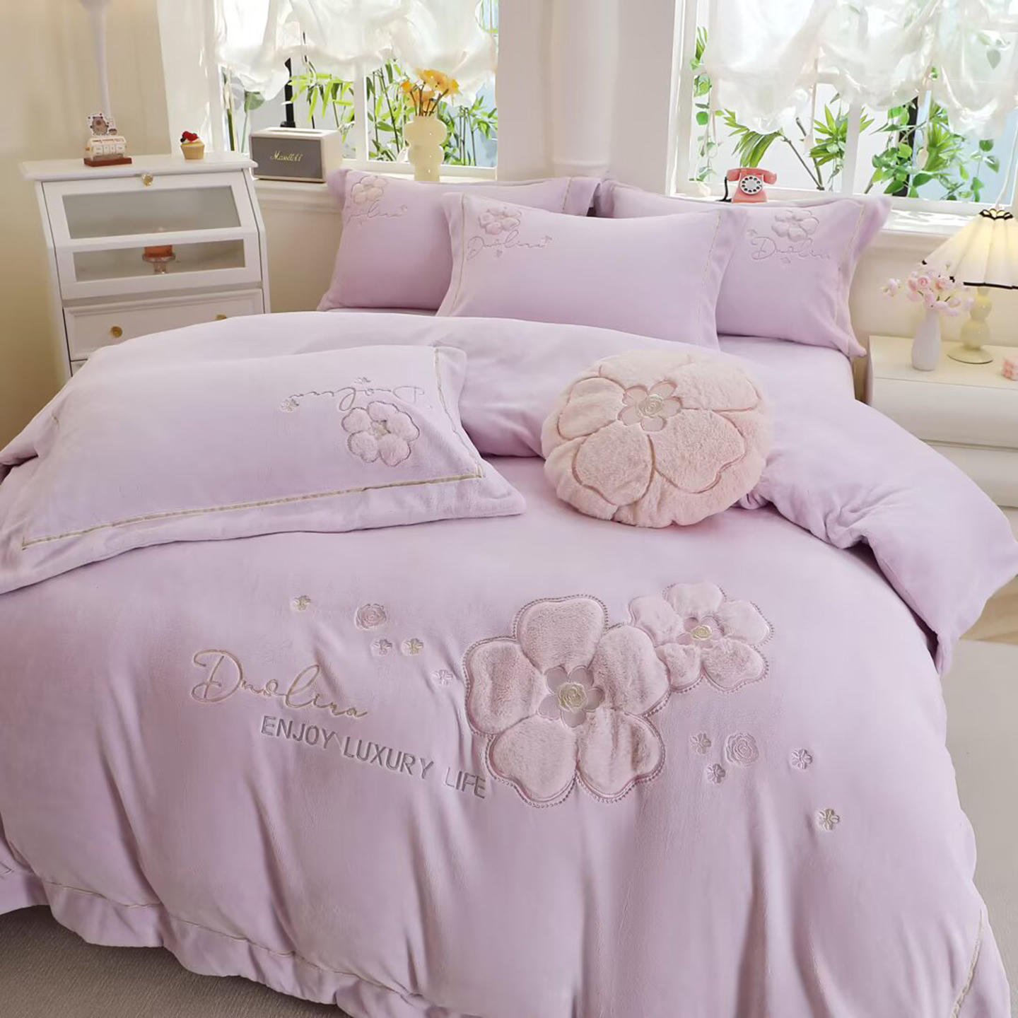 (总)棉生活家纺 2025新款高奢工艺260克A类牛奶绒兔毛贴布绣四件套-秀妍,秀妍-粉玉,秀妍-浪漫紫,秀妍-牛奶咖,秀妍-青草绿,秀妍-天空兰,秀妍-樱花粉