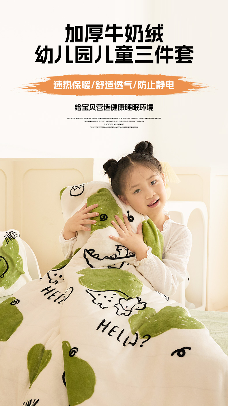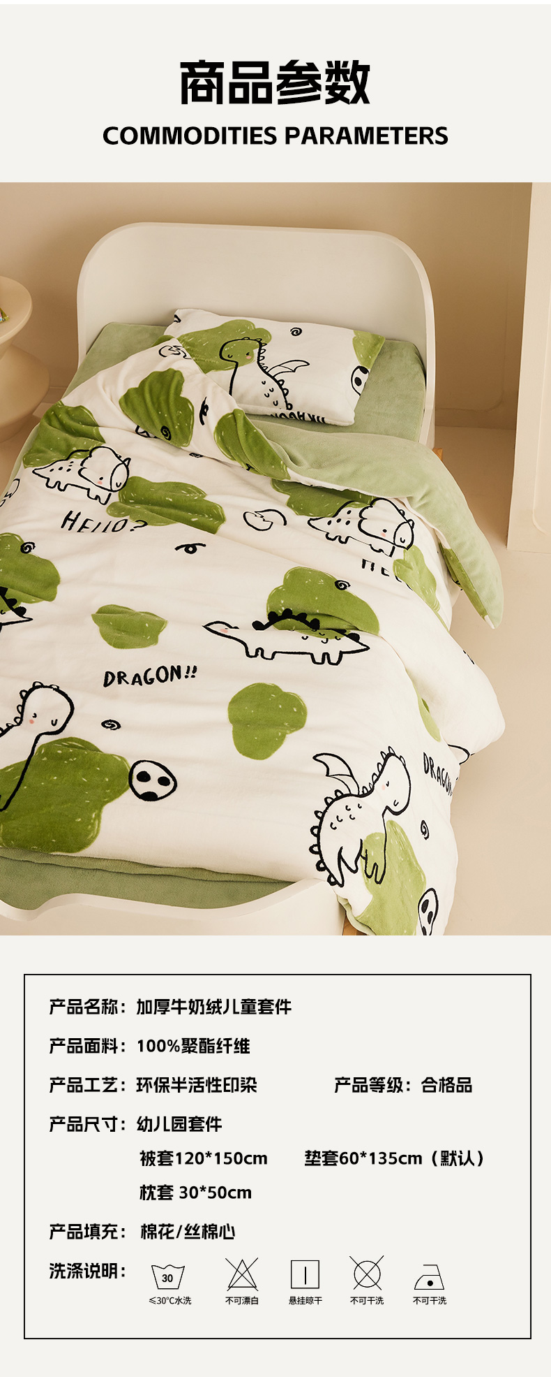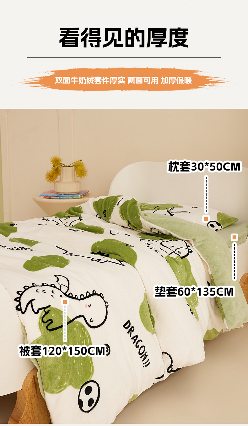 当前位置: 91家纺网 > 商品网购 > 床品套件 > 三件套 > 嗨生活 2025新款加厚牛奶绒三件套儿童套件幼儿园三件套系列 呆萌恐龙