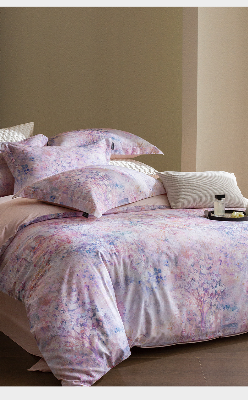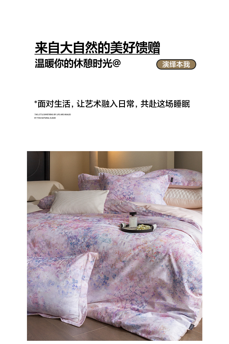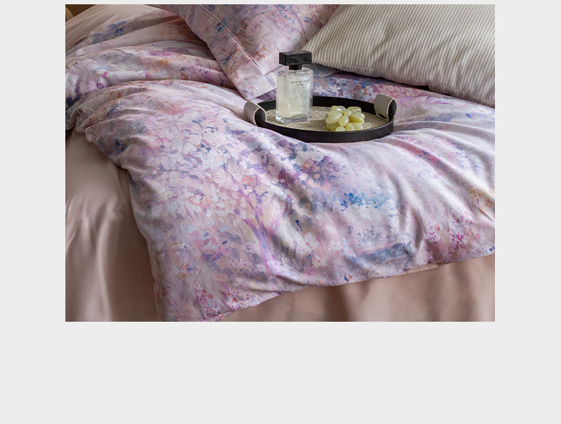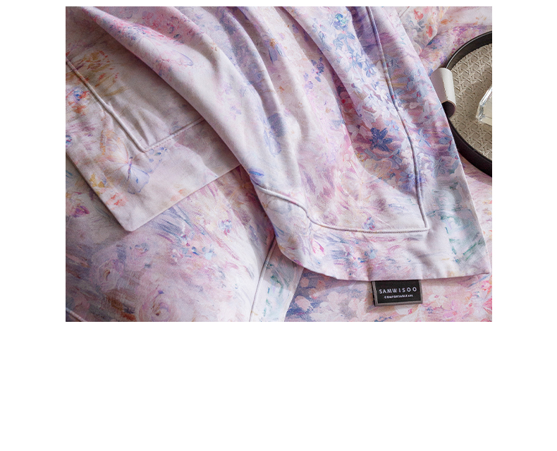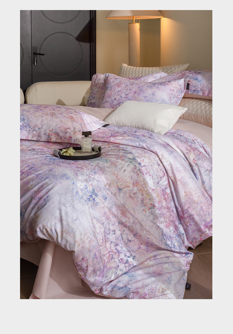 商品名称:三味舒屋 2025新款暖阳画卷系列S50数码印花磨毛四件套 午后莫奈粉