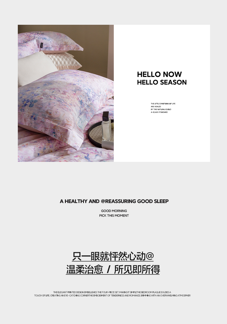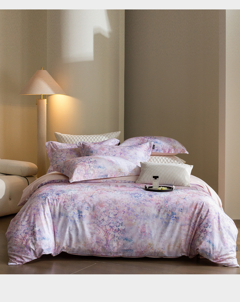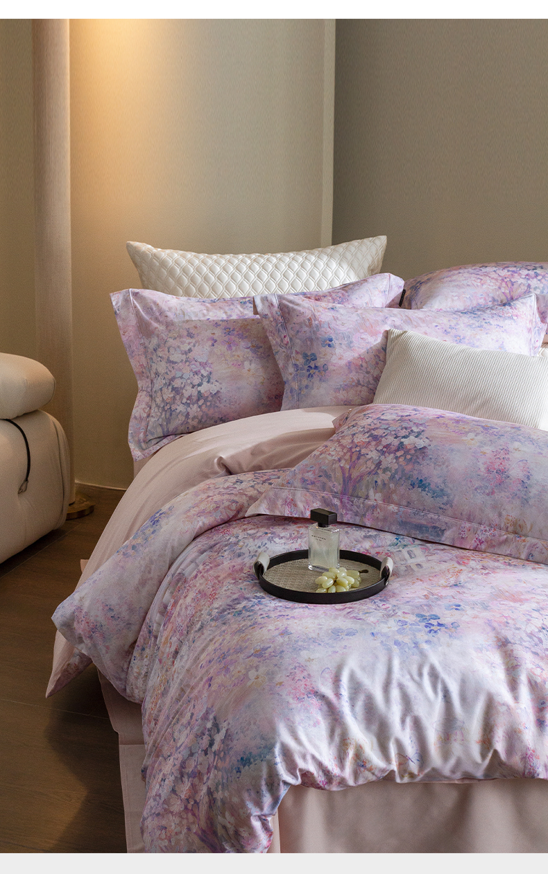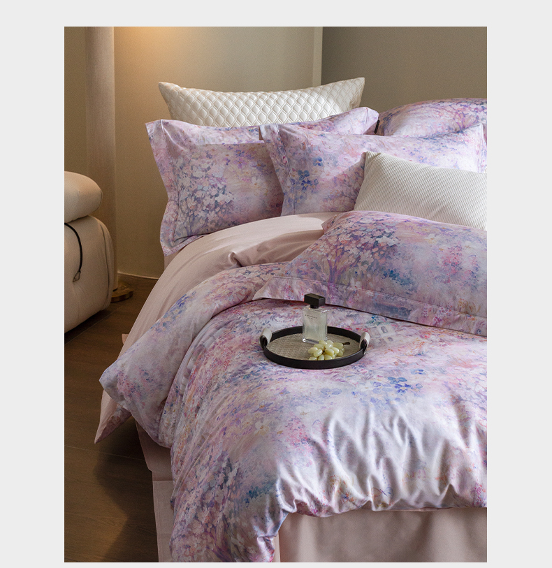 商品名称:三味舒屋 2025新款暖阳画卷系列S50数码印花磨毛四件套 午后莫奈粉