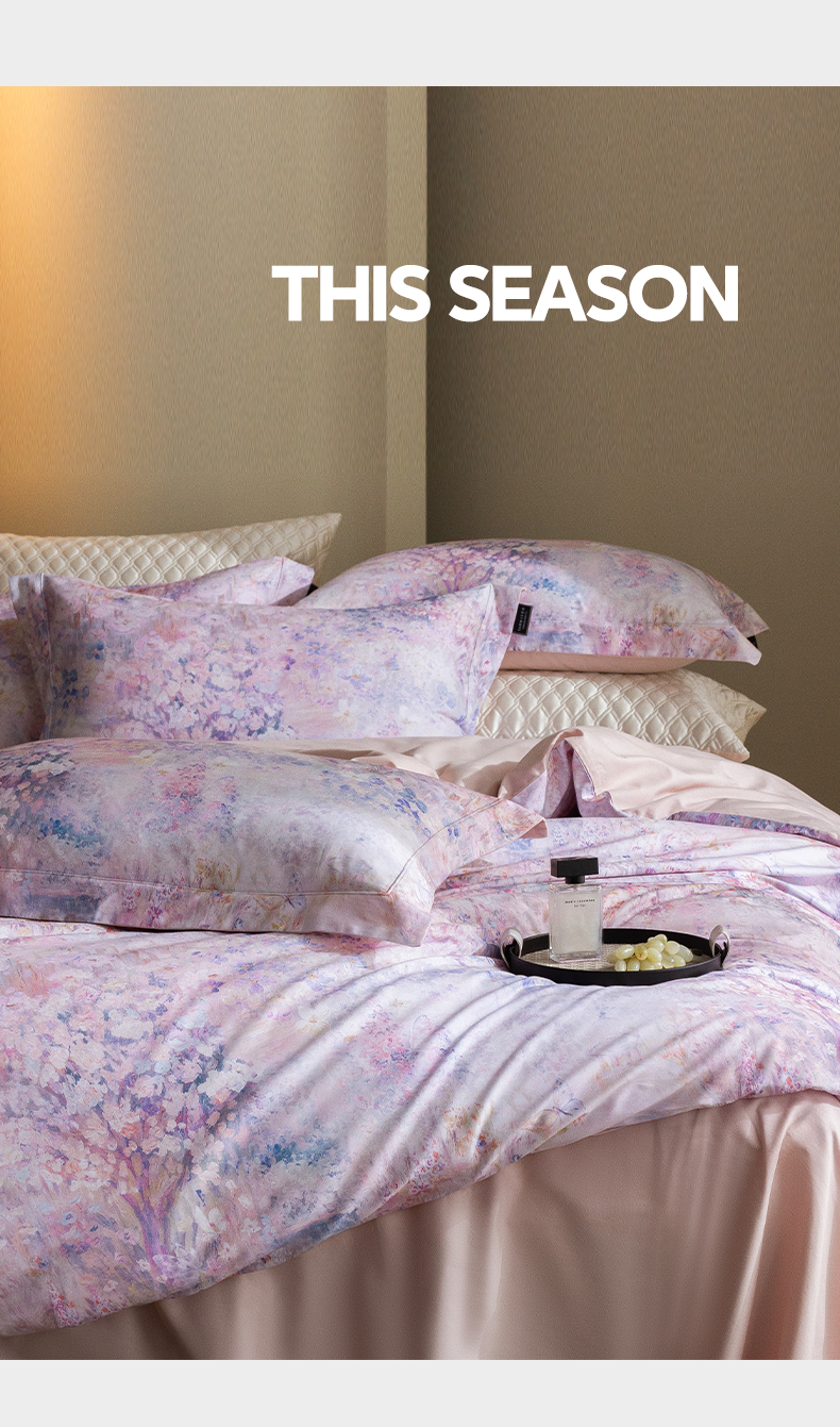 三味舒屋 2025新款暖阳画卷系列S50数码印花磨毛四件套 午后莫奈粉