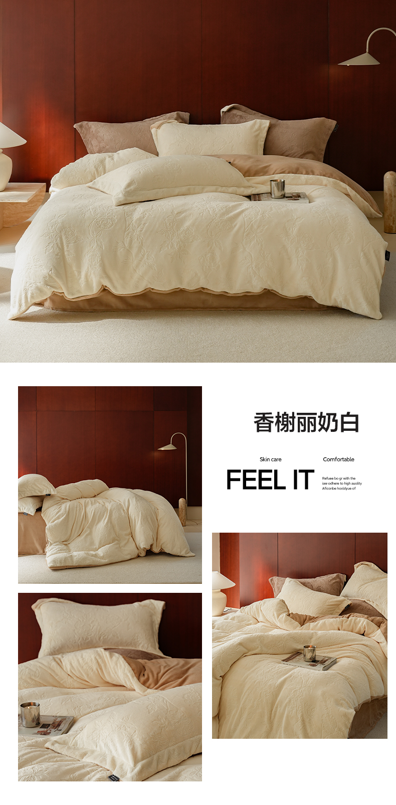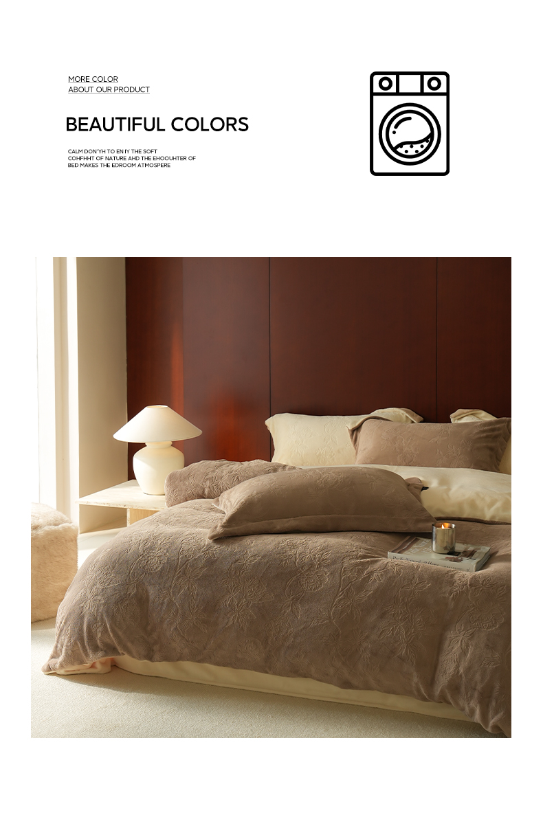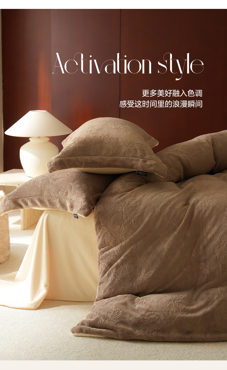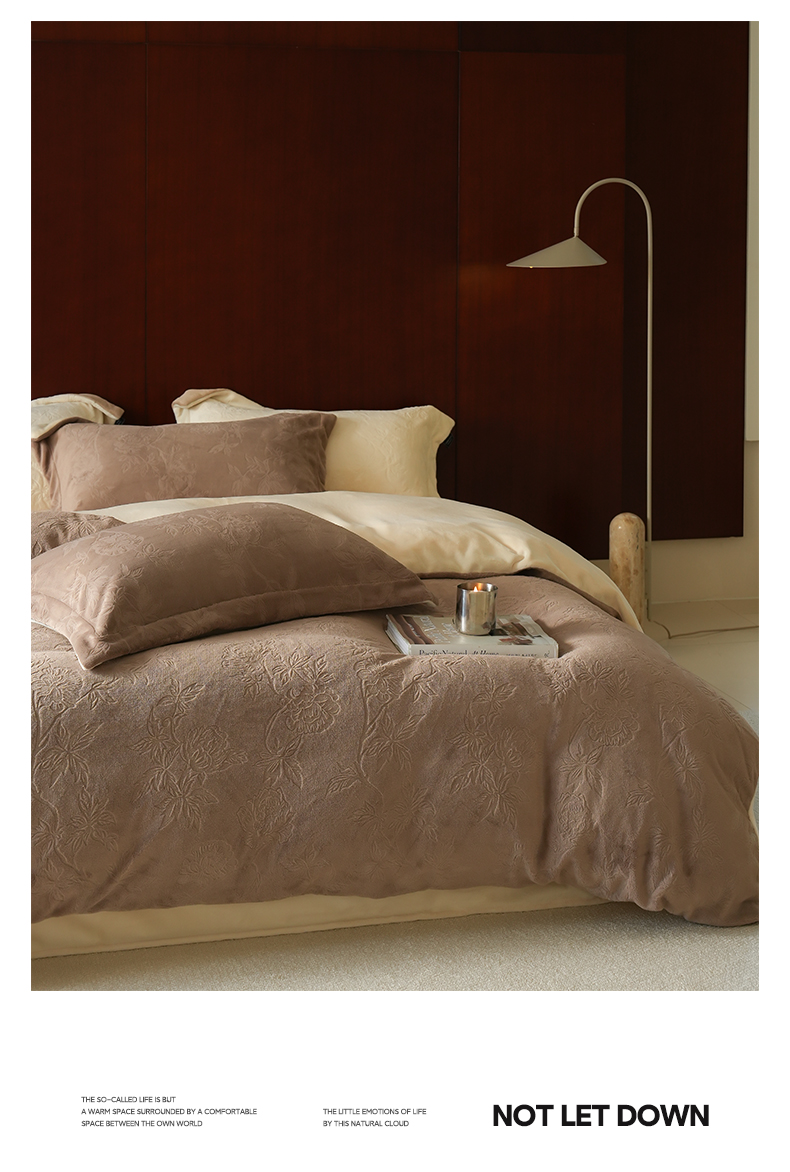 商品名称:三味舒屋 2025新款全消光雕花牛奶绒四件套-香榭丽 香榭丽咖