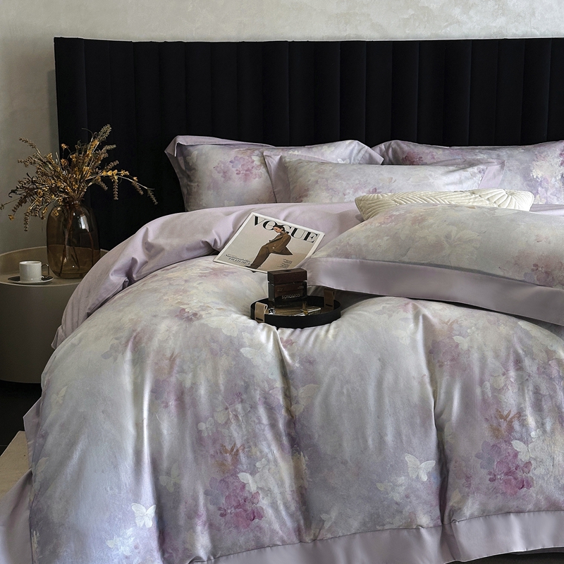 (总)南泉坊 2025新款60支全棉纯棉数码印花磨毛四件套,布拉格-米色,布拉格-紫