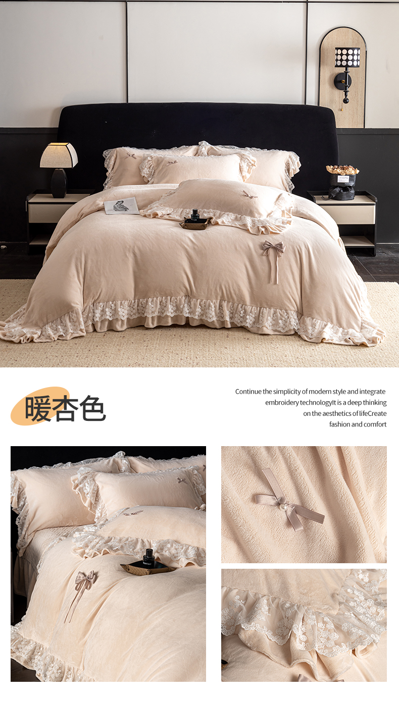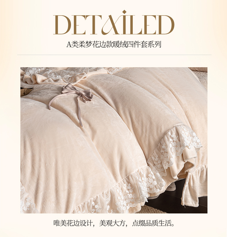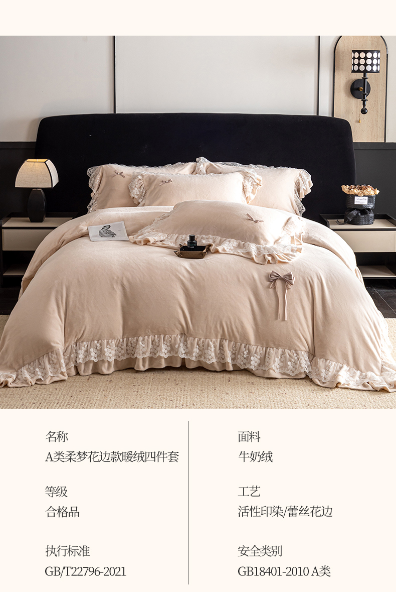 商品名称:(总)罗优家纺 2025新款柔梦花边款暖绒四件套